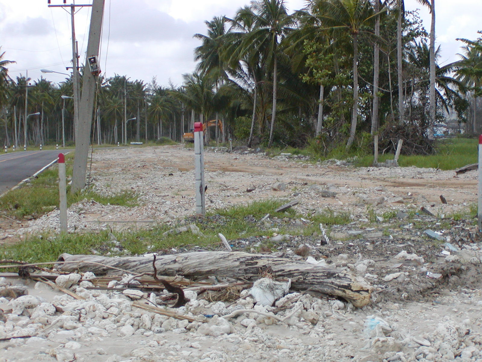 The town of Khao Lak is about 2 kilometers along the north-south road running along the beach. Everything on the west side (beach side) was completely swept away. This was the area where many of the hotels and shops were located. Everything on the east side of the road was reasonably in one piece, but it looks as if they needed to do a lot of cleaning and restoring of some of the buildings.