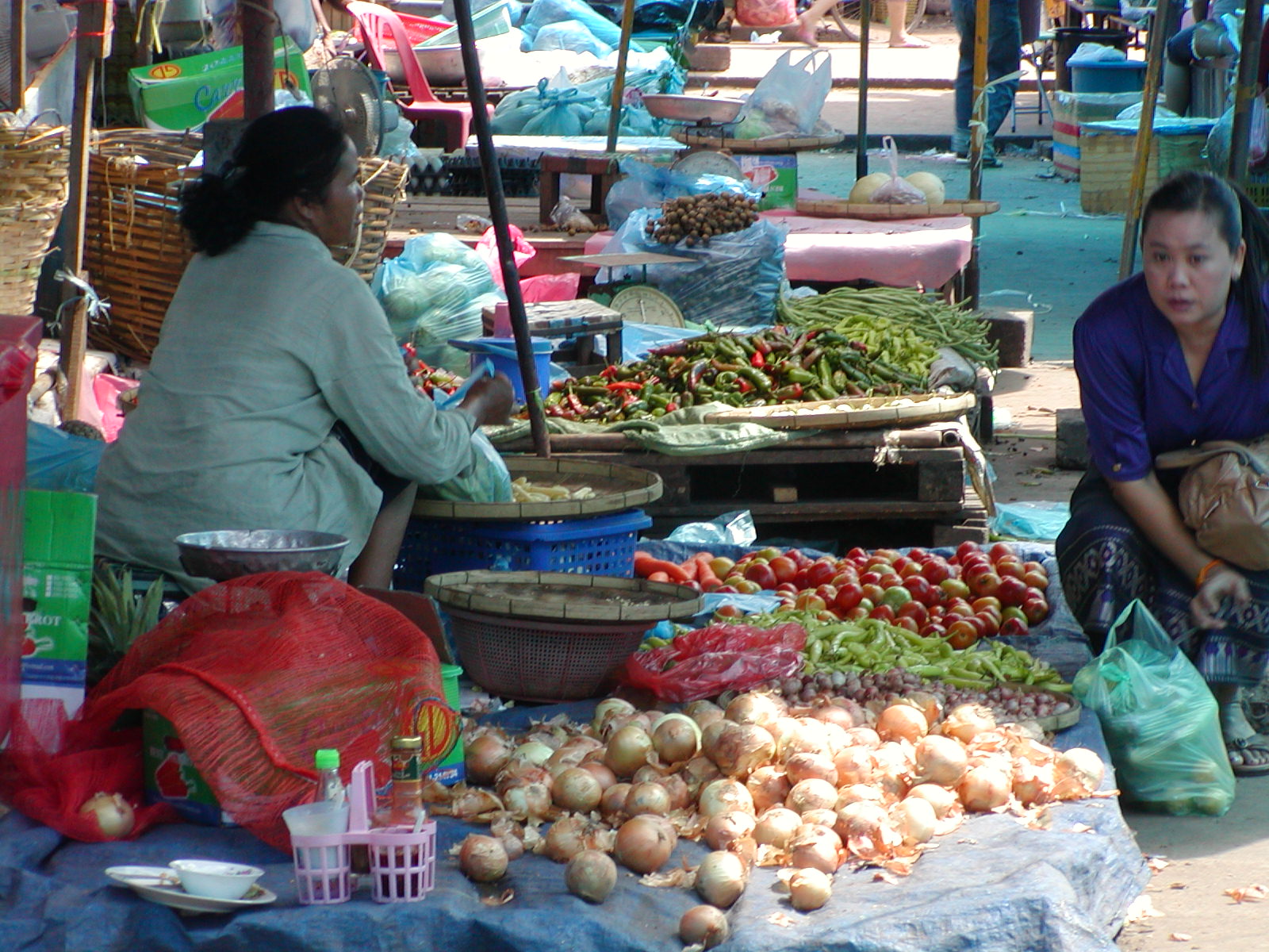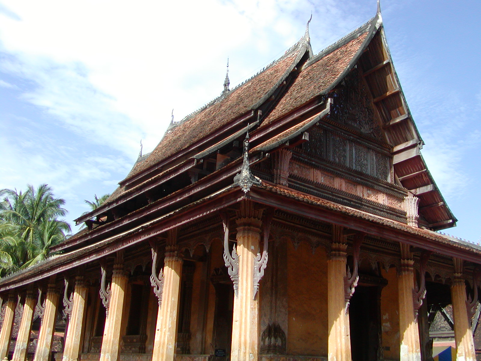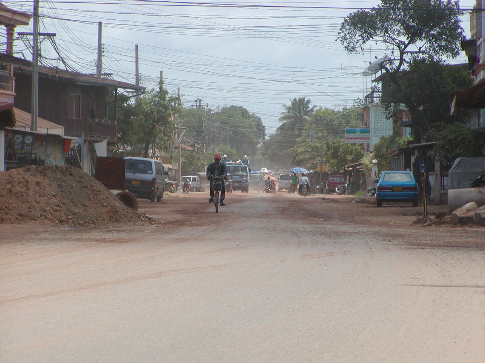 There isn’t too much night life here and things pretty much are closed by 11:30. The foreigners with some money tend to cluster in the lanes leading from the main river road. There are a number of good restaurants here. The real life of the City is along the numberous roads feeding into Lang Xain Avenue, the main eight lane boulevarde in the city. The food, as with most things, is CHEAP! The exchange rate changes daily because the local currency, the Kip, is so volitile. The exchange rate is 38 baht to the dollar and 267 kip to every baht. So as a result you deal in thousands of kip for anything…. It is nice to know, however, that I am a multi-millionaire SOMEWHERE in this world! The Lao prefer to deal in baht or even dollars, so you have to carry all three around with you…. It is fun….. The kip itself is only worth anything here in this country. Anything to take out with you, is downgraded to a souvenier.