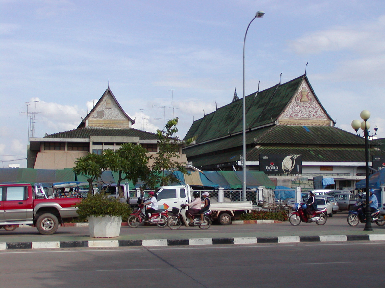 Arrived here the other day after an uneventful trip up to Nong Khai by train. We crossed the border over the Friendship Bridge and had to go to the Lao Immigration Office to get a visa. It only took 45 minutes, but was quite convoluted to say the least. You hand in your passport, visa application and 30 dollars US. You are then handed an entry form to fill out, but of course you need your passport information. Glad I had a copy of mine to get the information! After a while, an officer waves a passport out the window of his air-conditioned office. They don’t call your name, so you’d better be watching for something that looks like an American passport! After paying 10 baht to get into the country, there is one more guy to stamp your passport and papers MANY times! It all looked VERY official!You just say, “Kop jai lai!” (Thank you very much!) and move on thankful that there is no baggage check or other impediments to getting out of there!