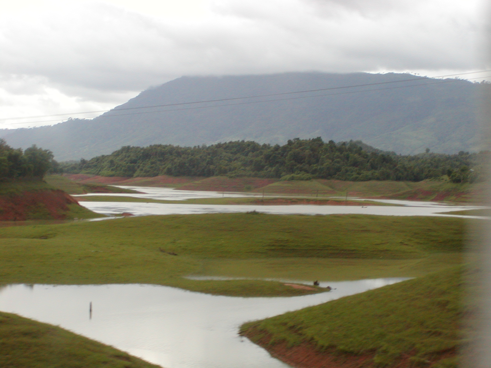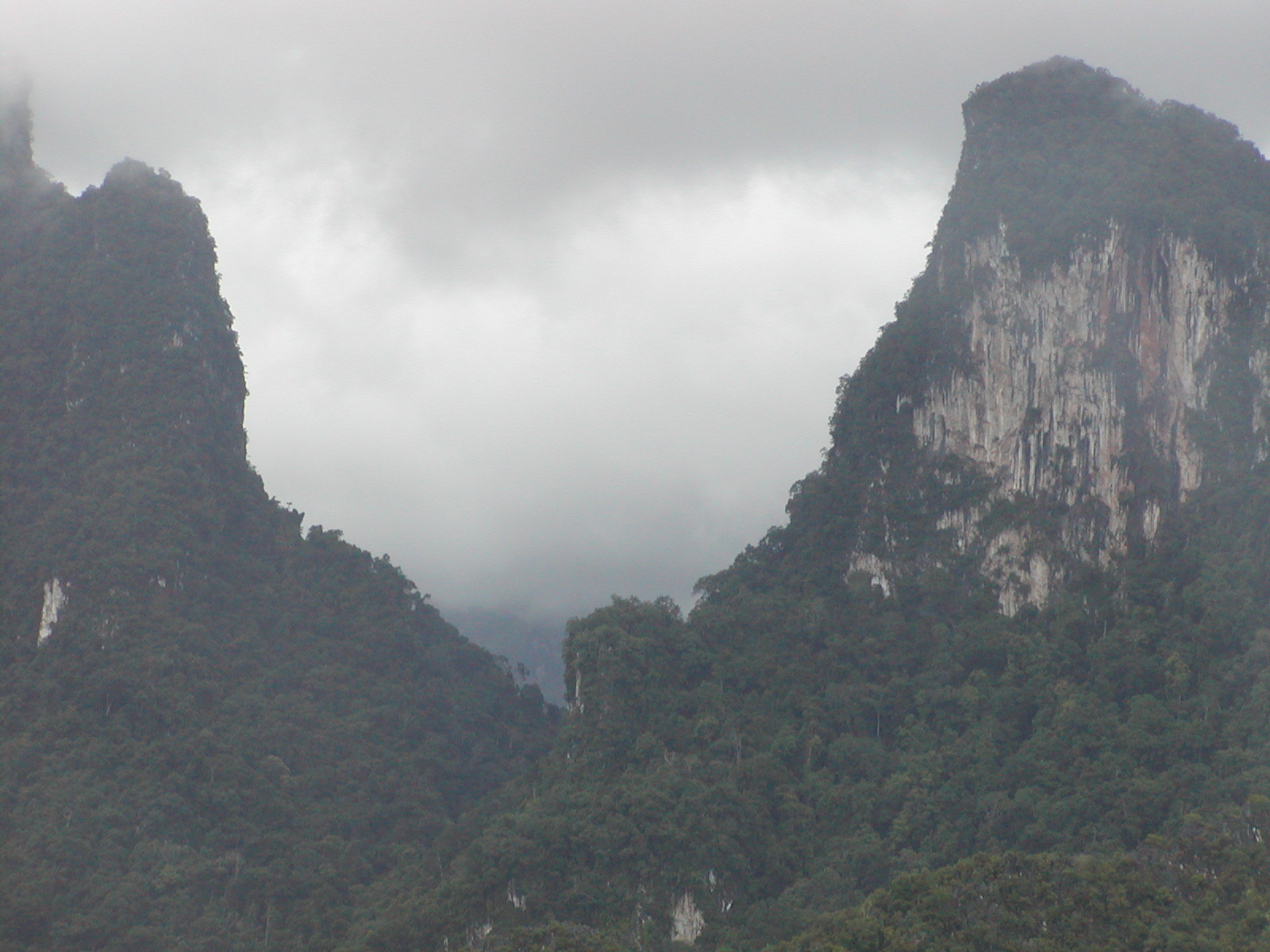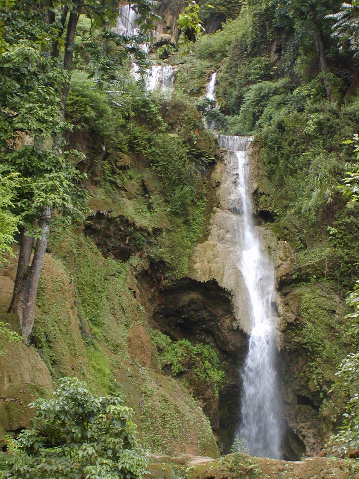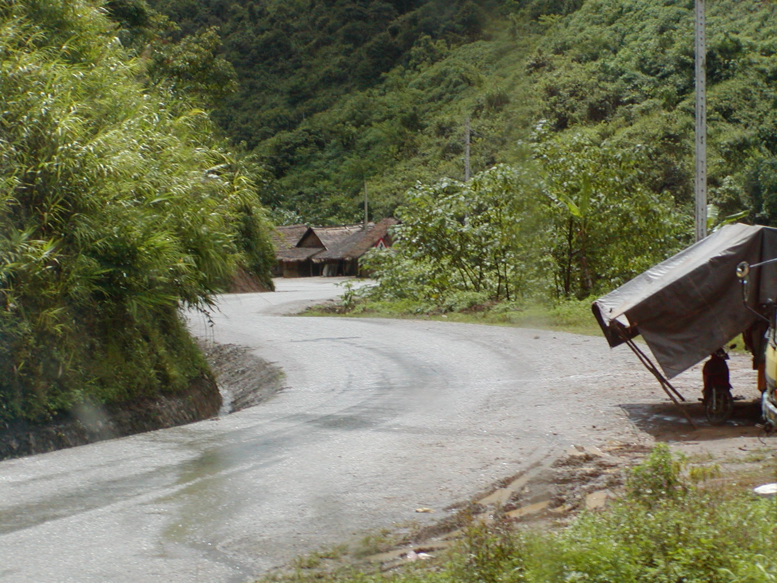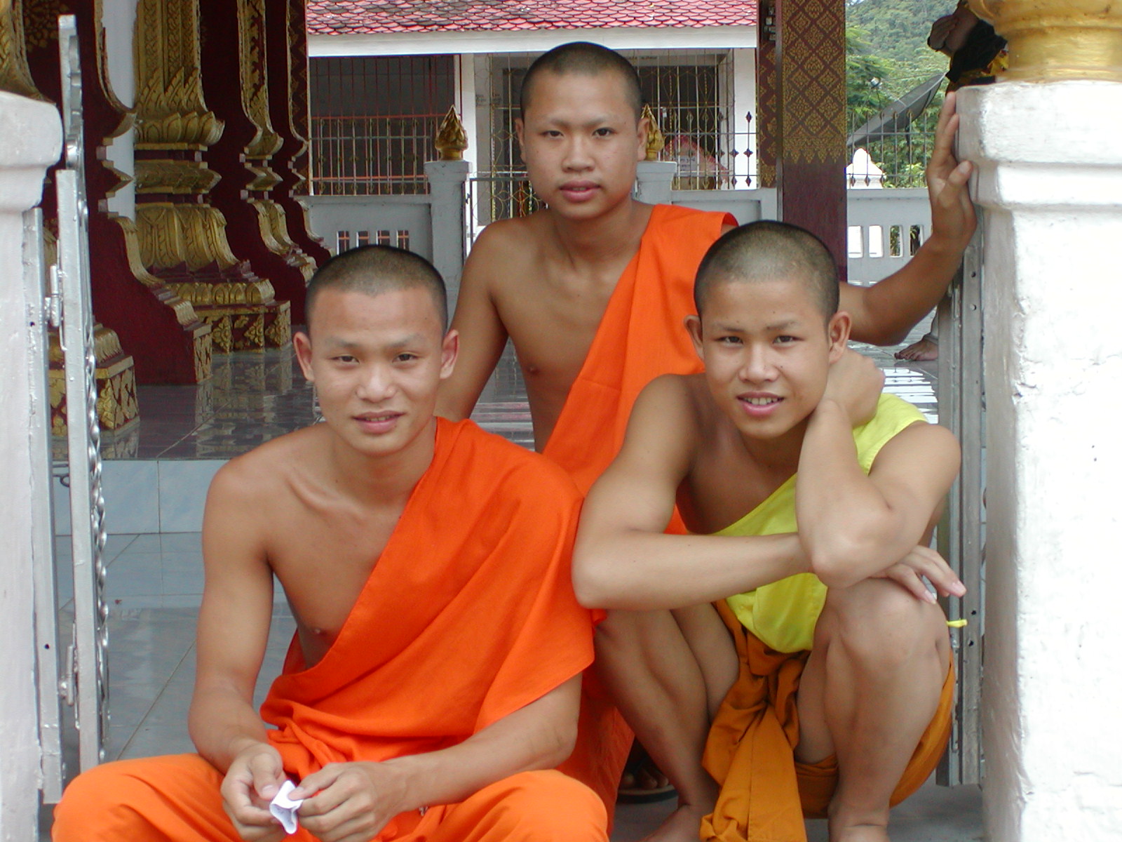 The trip up here from Vientiane was incredible. We quickly passed through the Mekong River plains to the foothills of the mountains. We went through Vang Viang, an astoundingly beautiful place with large limestone outcroppings and verdant gorges. Unfortunately, I was on the right side of the bus, so I didn’t get many pictures. With the exception of a 30 minute stop for lunch, we spent 5+ hours weaving our way through the mountains. Route 13 is a fairly good sealed road, but the absence of guard rails and traveling a hair’s breath away from certain doom is both thrilling and heart-stopping scary! We passed through villages of lowland Lao, Hmong, stands of bamboo bending toward the road as if waving to us, teakwood, slash-and-burn farms, mountain corn and terraced fields of rice. The terrain all decked out in its tropical rain forest splendor. We arrived just in time as the brakes were so over-used going through the mountains that they were squeaking wildly by the time we entered Luang Prabang.