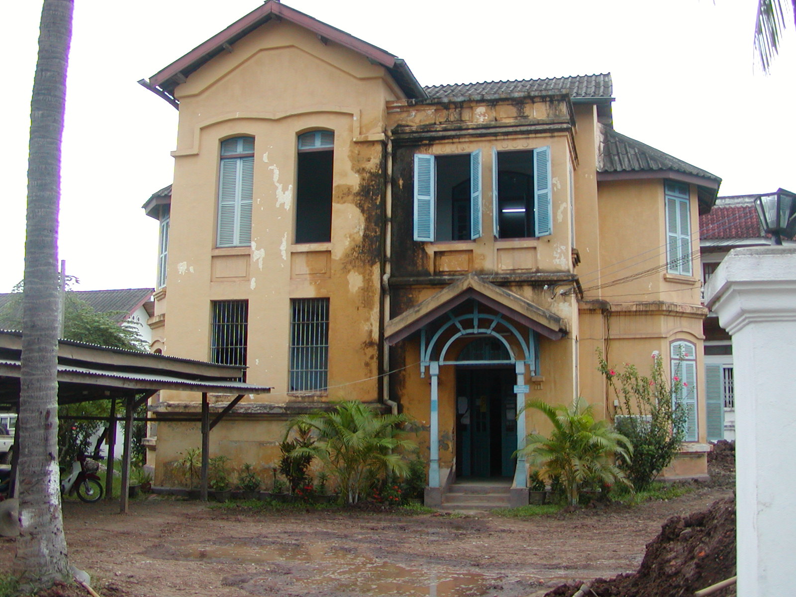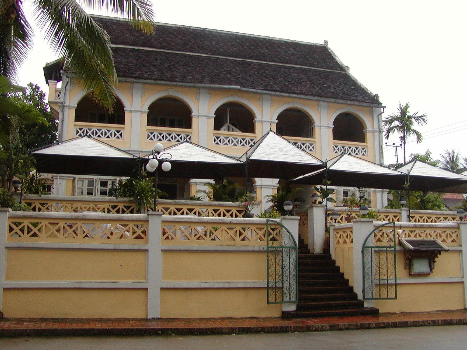 The hotel is everything promised. Right on the Mekong River, with terrific private balconies overlooking the street and river. The room oozing colonial charm. It is a Sino-Portugese style building built in the 1930’s. It was the home of a French merchant up to 1968. The more interesting part of the city exists along three main roads and each has its distinct flavor. SouvannaKamphong Road runs along the river. It is quiet with small hotels and Lao restaurants lining the bank of the river. Sakkarine Road is filled with tourists and restaurants that serve Western food. Kingkitsarath Road is along the Nam Khan River and boasts beautiful views of the river and the mountains beyond plus a few residences and restaurants.