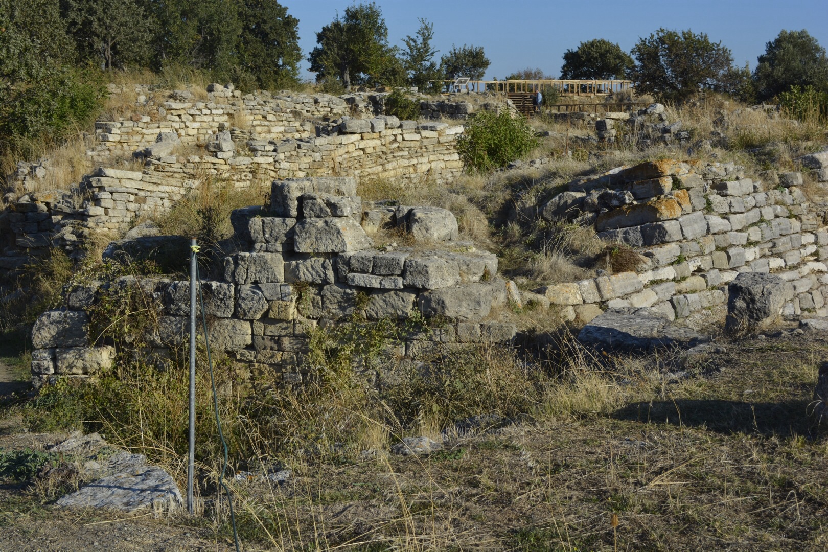 It was like being in a dream. The next day we made the short trip from Cannakkale to Troy. Getting off the bus took my breath away. Not because it was such an awesome site, but just that I was at long last actually THERE! When I was a boy, I read the books of excavating Troy. It became a mini-obsession! I even tackled the Illiad, but I must confess it was hard to understand at 11 years old! Alemdar, our tour director, asked us to put on our hearing devices as he lectured going through the ruins. However, it wasn’t long before I found myself dropping back from the group, disconnecting the ear phones, and having time to walk the ruins by myself. Even though I knew the wall was possibly from a later period of Troy’s reinvention, I was blown away standing on the remains pretending I was Paris or Priam looking down from the ramparts at the action of battle below- as much a conflict of gods as men over the possession of Helen of Troy. Not a great deal has been excavated at the site, but you can get the sense of the various levels of the city representing the time periods in which the city resurrected only to fall again to some other calamity. It was such an incredible gift having that 20 minute period of time to be alone with the site as the others had moved on to the replica of the Trojan horse and the gift shops and no other tour group had arrived yet. It was difficult getting on the bus not an hour since our arrival. It seemed to me that after wanting to get here for so long, I should be spending more time. However, the spell the site had cast on me disappeared with the arrival of a two-bus tour group. So off we went on to the next place on the itinerary. As the bus picked up speed on the dirt road, I could barely see the ruins and the thin blue line that was the Dardenelles.
