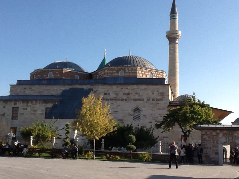 Our next destination was Konya, the old capital of the Seljuk Turk empire. It was also an important stop on the Spice and Silk Route between China and Europe in the late Middle Ages. As relaxed as Antalya seemed to be, Konya was not. It is a university town but the atmosphere is not the keg-o-brewski of our college towns! This is a rather conservative Moslem place. There are those who approach tourists hoping to convert them! One bright spot was that this is where Rumi, the mystic and philosopher lived and is buried in a mausoleum. It is quite an impressive structure. This is also, therefore, the religious home of the Sufi sect. They are very connected to service and preserving the earth. Right now, they are helping out on the Syrian border. I was not sad that we left Konya. In the morning a grey, smoky haze drifted over the city from the coal-burning heaters that are used extensively there. It really gets into your lungs.