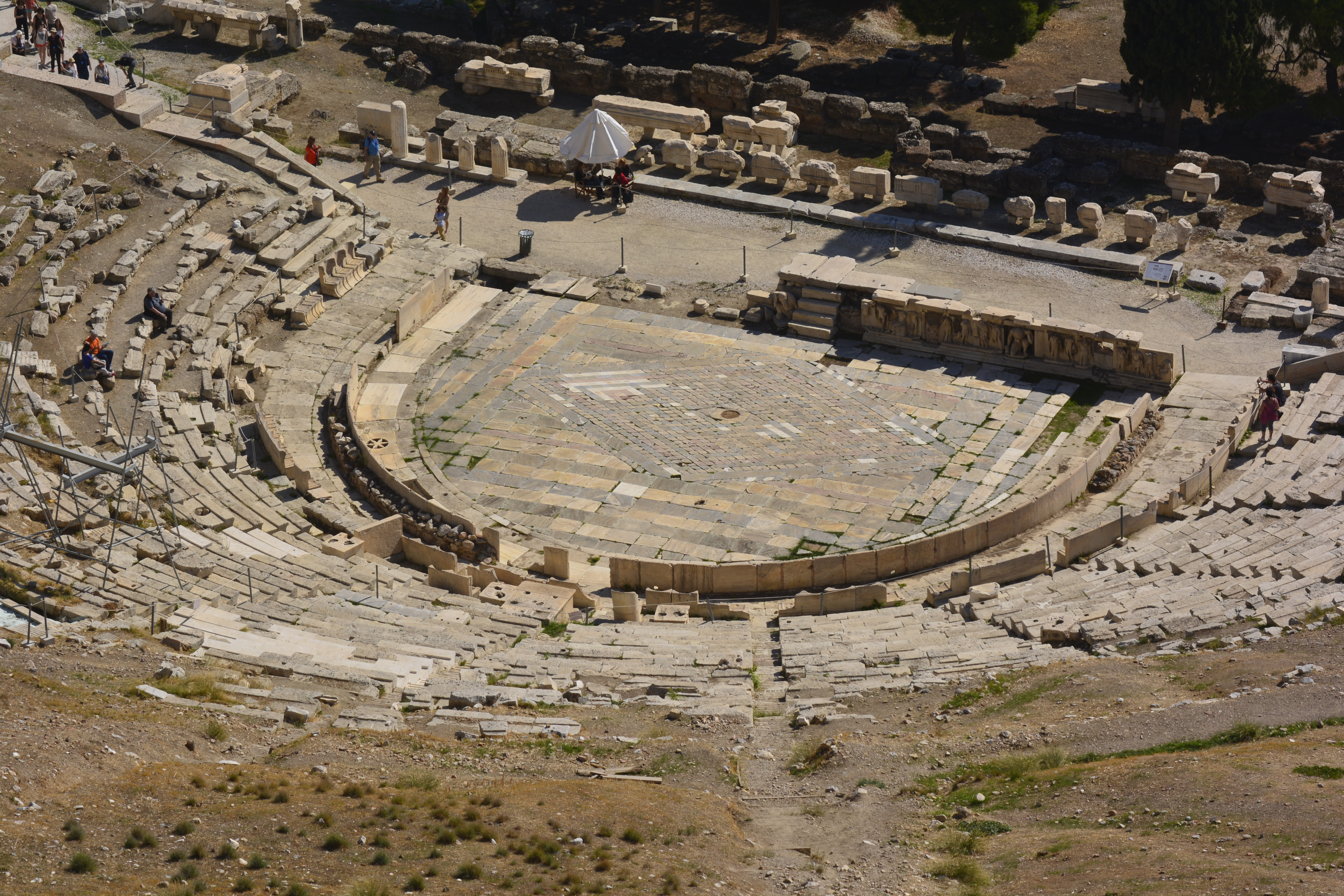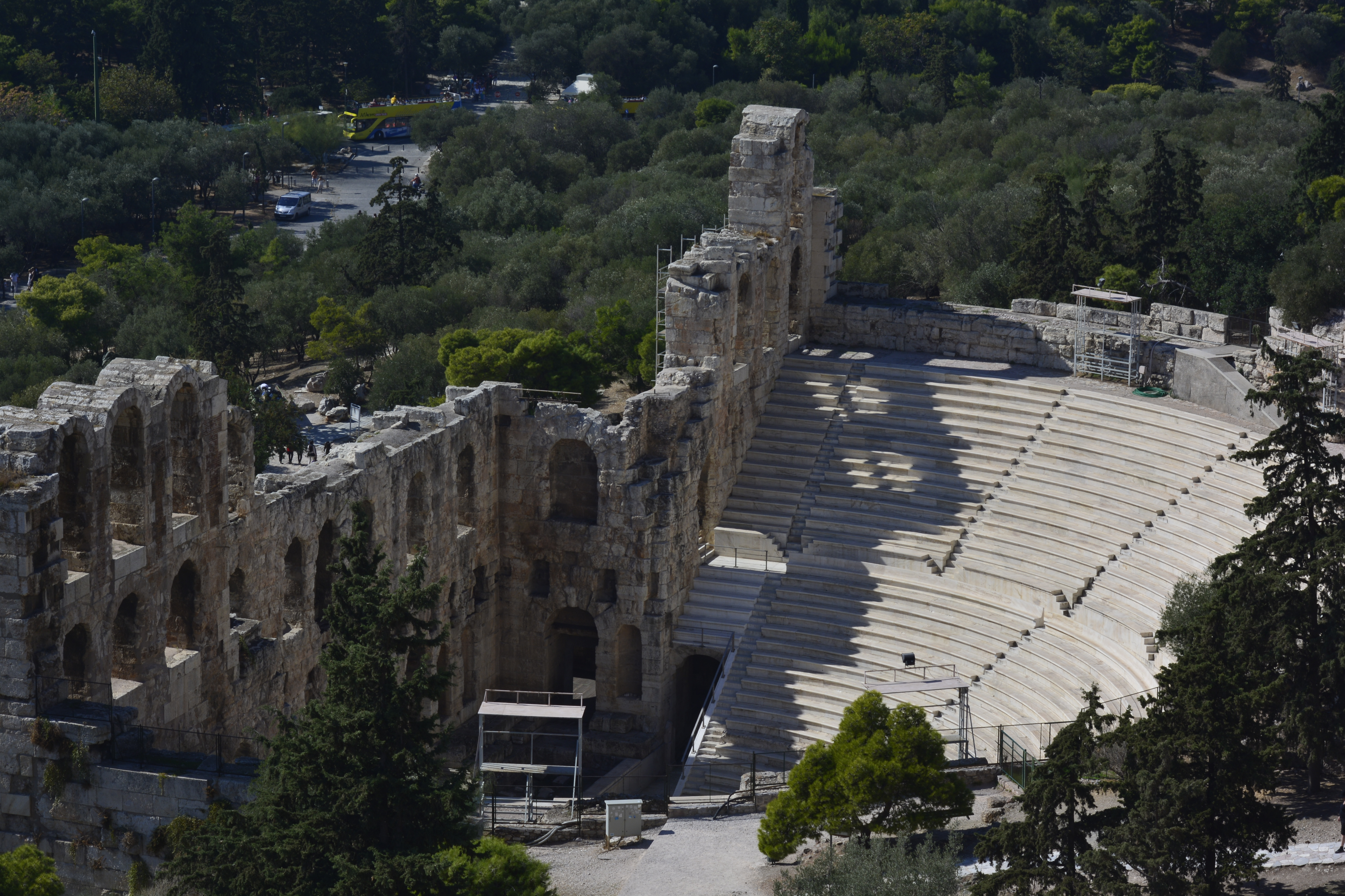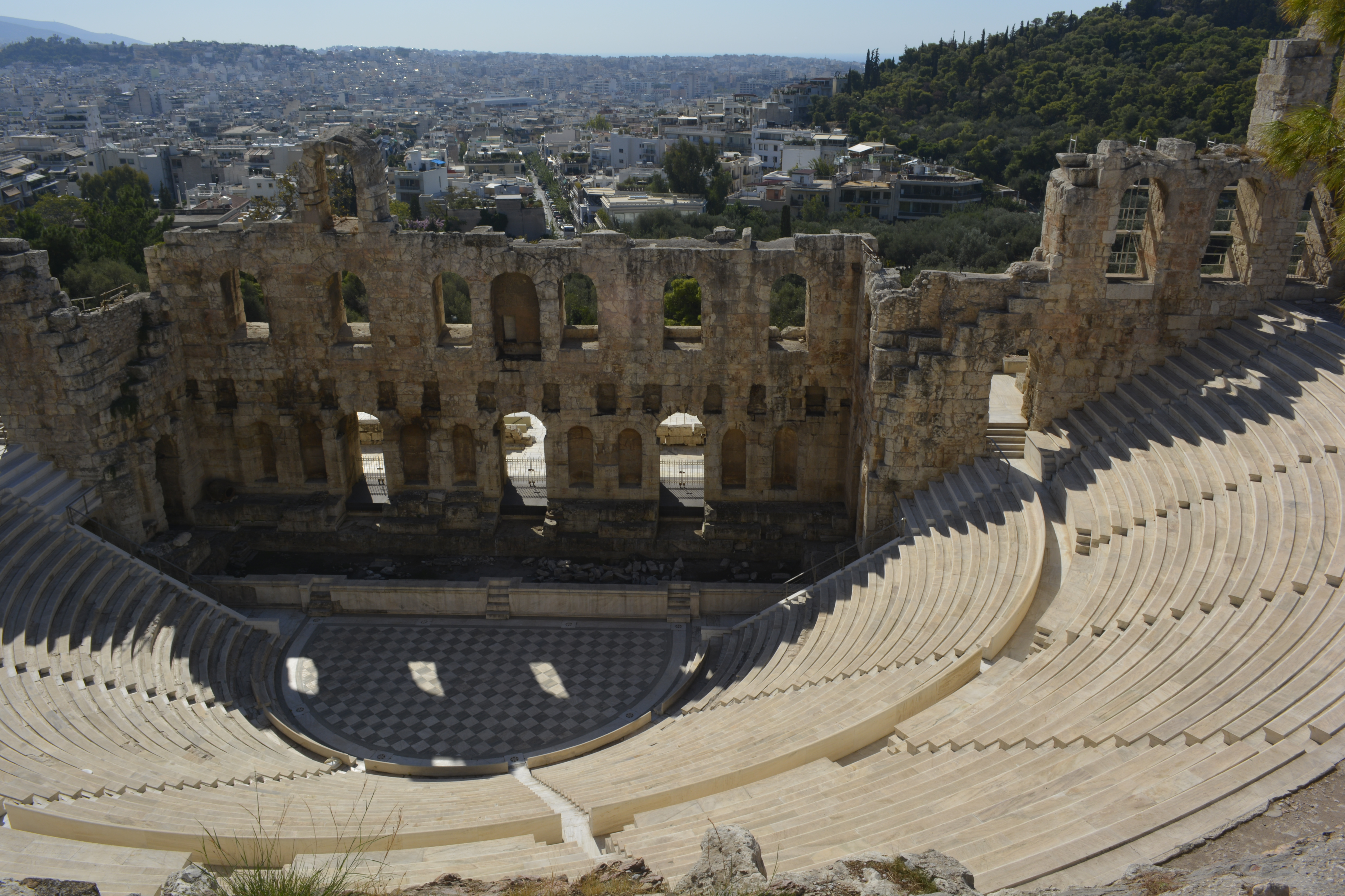 I stopped by the remarkably preserved Theatre of Dionysus and the Odeon of Herodes Atticus, which sit at the base of the southern side of the Acropolis. You cannot gain access to these sites from the Plaka, but you can see all you need through the metal gates. I had already gotten lots of photos from the top of the Acropolis.