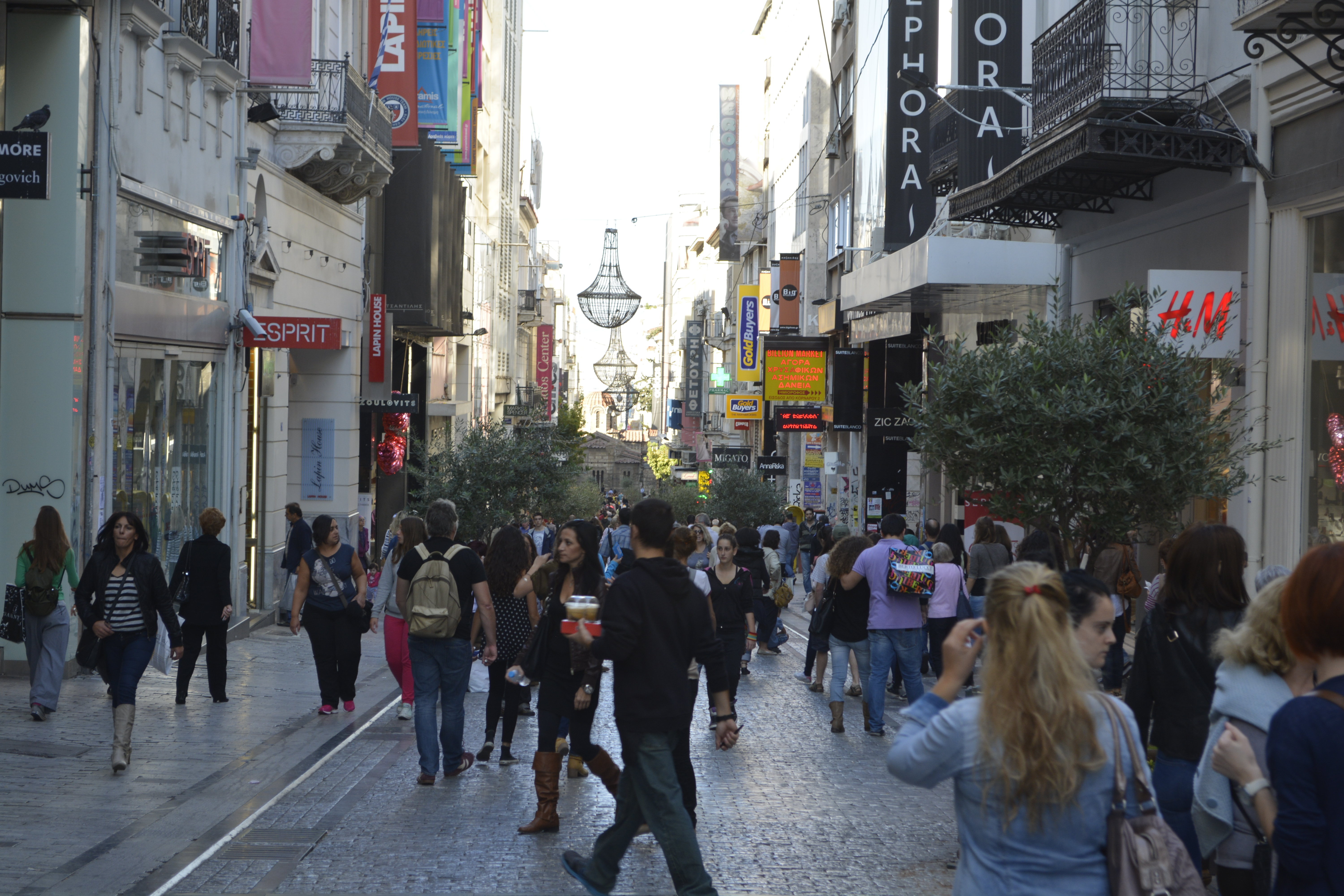 I returned to the hotel to rest up and then have dinner. I decided to leave my camera as it was getting dark anyway. As I left the hotel and was walking toward the square, I saw a demonstration of labor organizations marching loudly toward the square.The next thing I knew, there were two columns of police officers in complete riot gear on either side of me heading toward the demonstration! I cursed to myself for leaving the camera behind, and headed back to get it. By the time I got back to the square, the demonstrators were breaking up and police were on stand-down! That camera would never again leave my side! The economy of Greece is in a sad state and the austerity measures from lower wages, higher taxes and fewer services has caused a lot of consternation in the country. There is an atmosphere of agitation nearly everywhere you go in the city.