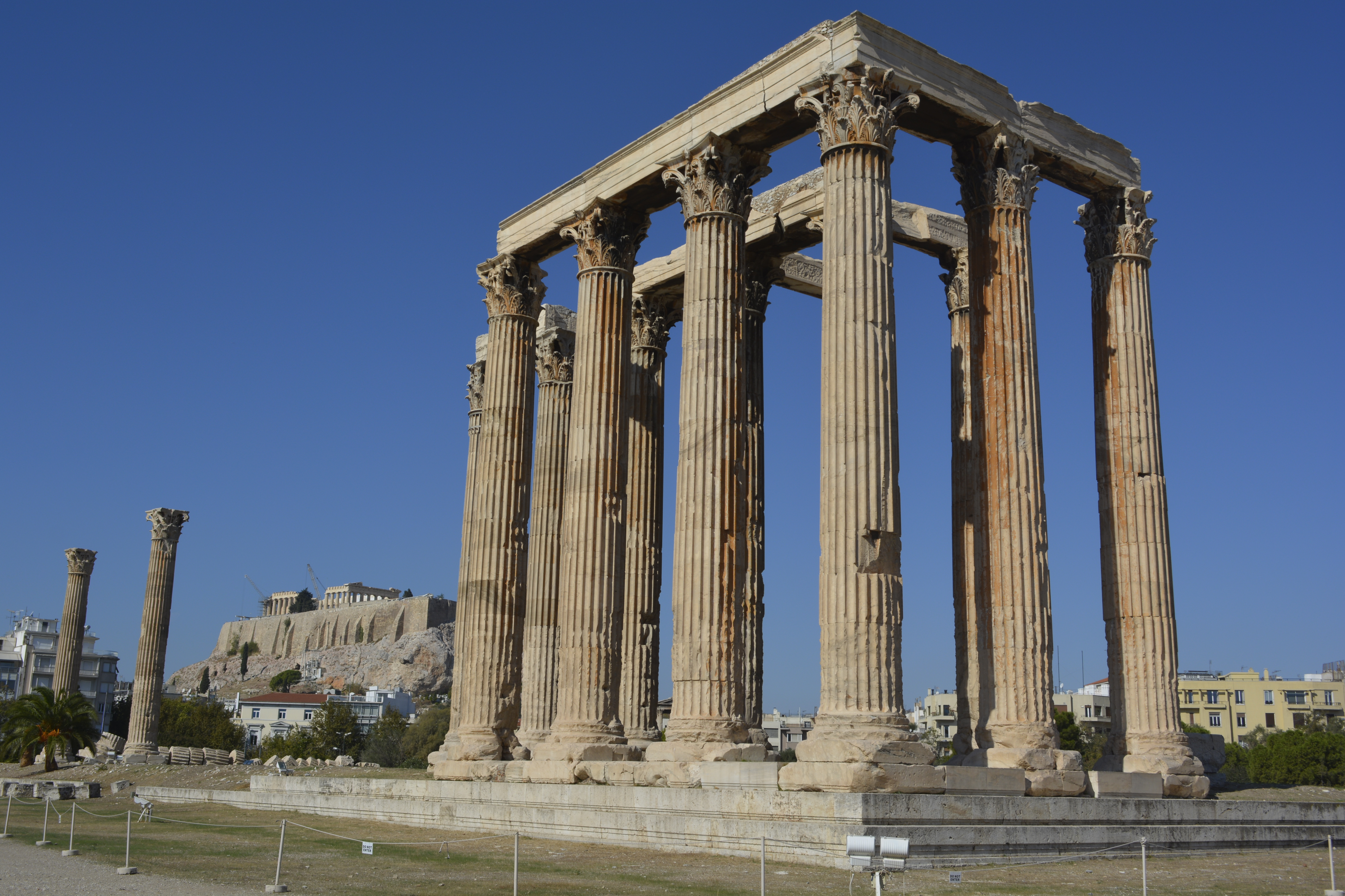 When I got back to Athens, I got off at Montastiraki station and decided to walk around the eastern and southern sides of the Acropolis. I walked up Ermou Street with its trendy, expensive shops and found myself at Syntagma Square, where the Greek Parliament and government offices are located. I then continued on to Hadrian’s Gate and the Temple of Zeus, which is little more now than a stand of columns with a nice view of the Acropolis.