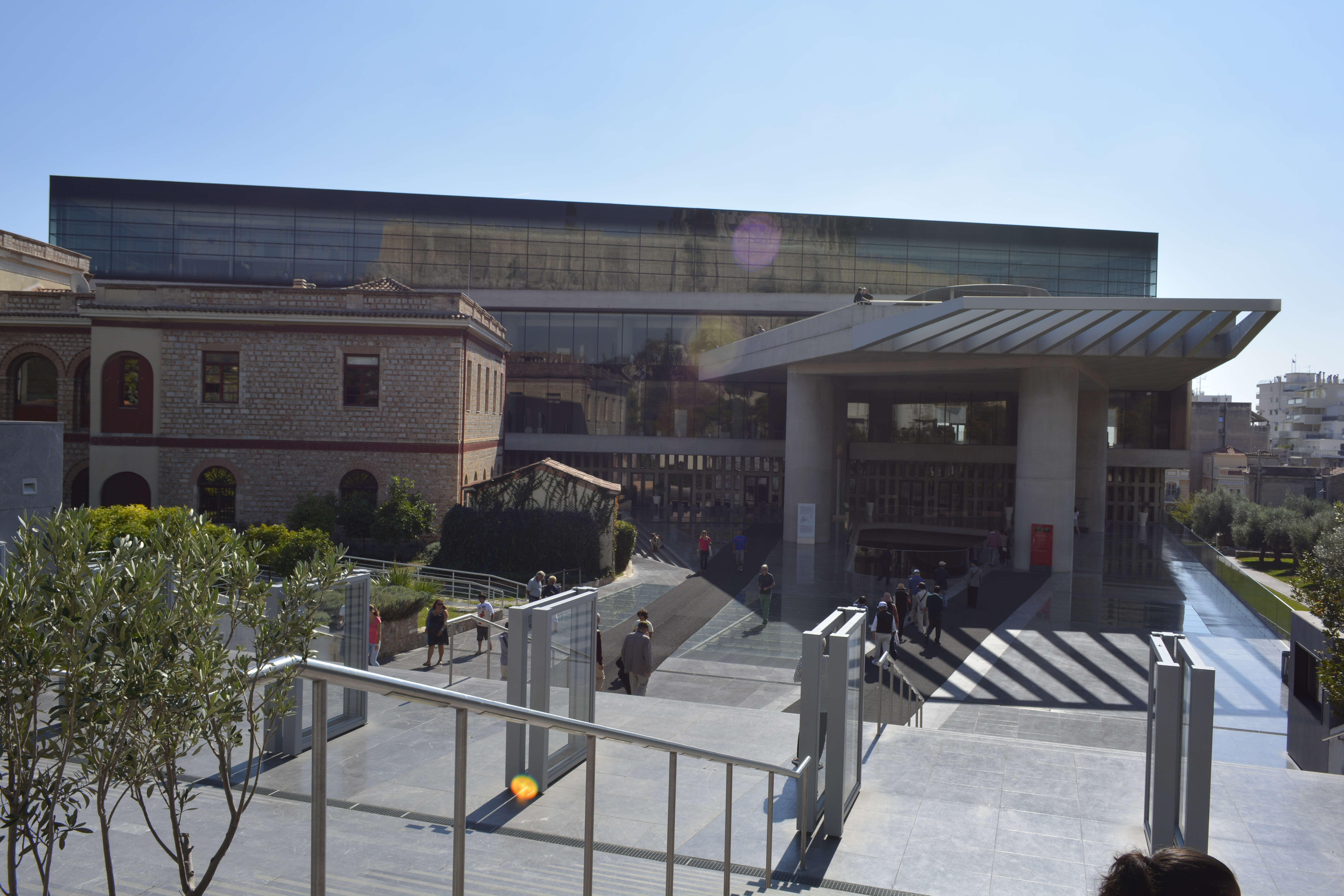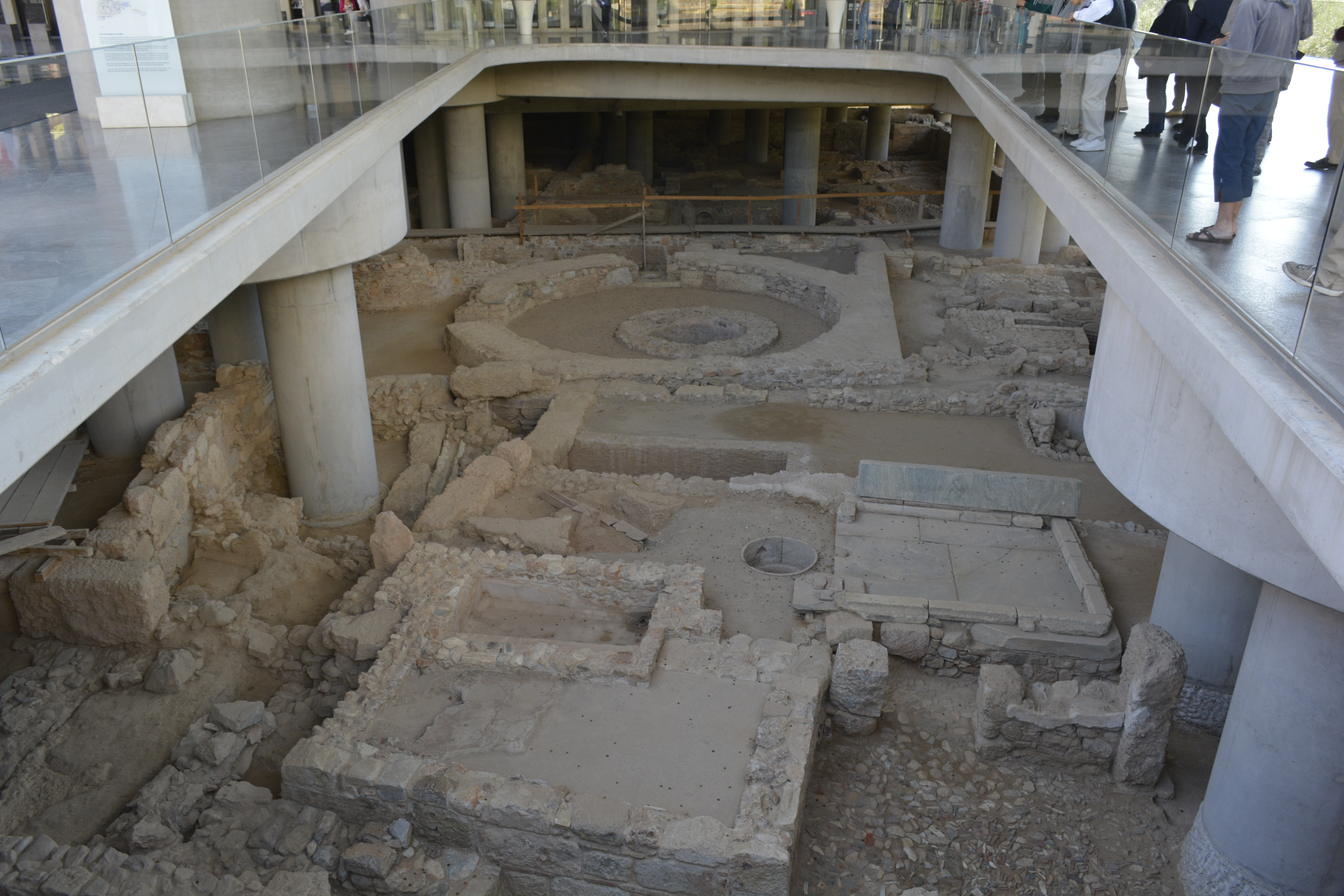 I continued on to the Acropolis Museum and was happy to see that it was open till 8PM. This is a new museum specifically built to hold the friezes and remains that are found at the Acropolis. It is a wonderful museum filled with all kinds of statues, pottery and every-day objects big and small found around the Acropolis. Most interesting of all is the recent find of an old neighborhood of Athens when constructing the museum. The ruins can be seen through a glass floor that extends up the ramp to the entrance. In the near future, the underground will be completly excavated and opened as a part of the museum in which visitors will be able to roam. The museum was built to protect the marble objects from the Acropolis that are being ruined by the pollution. It is also hoped that the museum will also give some pressure to the British government to return the Elgin Marbles, friezes stolen from the Parthenon. Oddly, unlike many other museums I had visited, they do not allow photography.