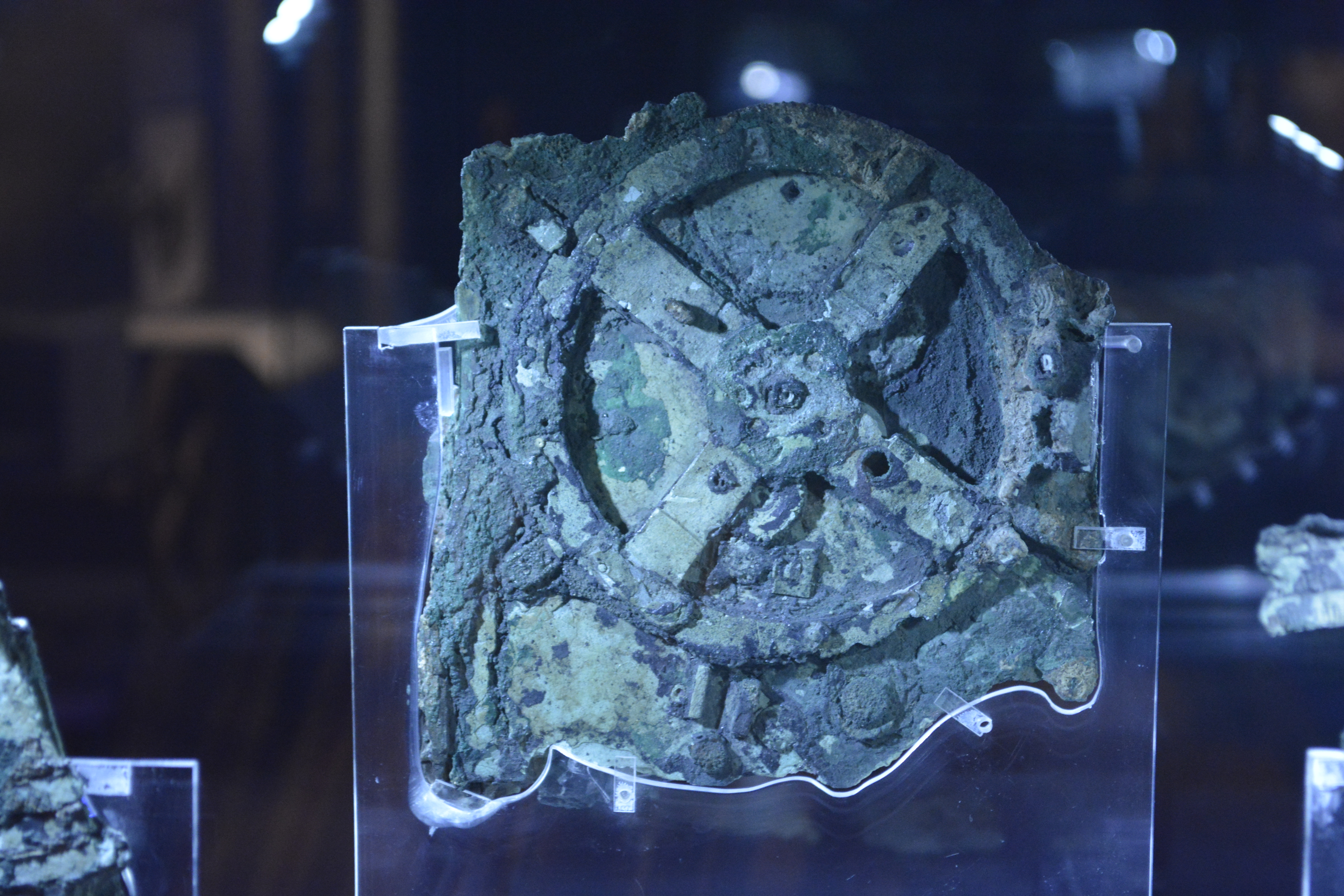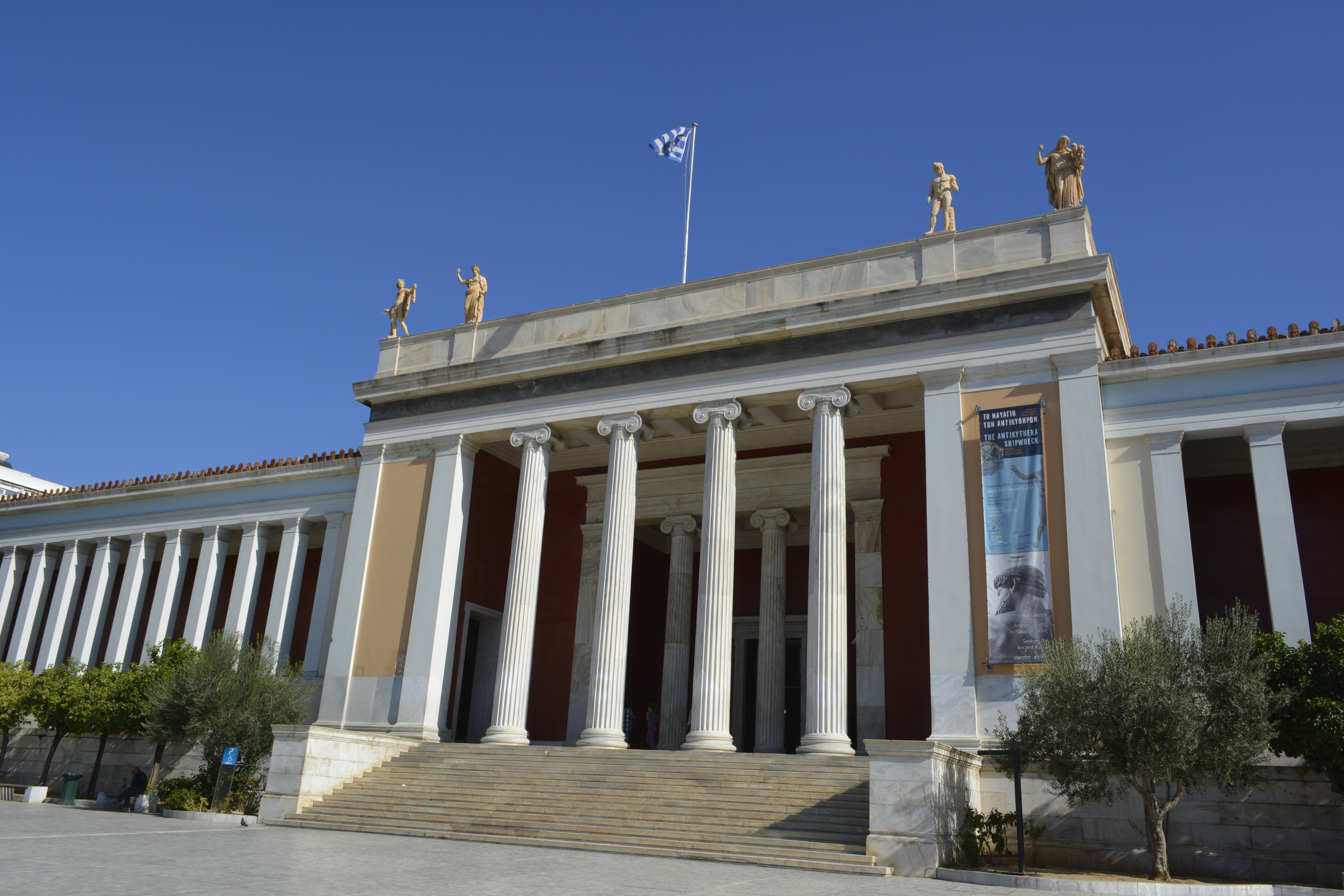 The next day I was out and to the National Archeological Museum. This has to be one of the premiere museums of Europe. I entered at 9AM and did not leave until after three. Though it is smaller than many museums, you need go no further to see an incredible array of bronzes, mosaics, gold jewelry, pottery and statues from every era of Greek history. The first room is a collection of early massive statues. Compared to the marble statues of the later eras with their graceful, fluid lines, these appear stiff and formal, but are amazing in their representation of strength and power. The next room contains showcases of impressive and startling gold jewelry from Mycenae, including the so-called “Mask of Agamemnon.” It is actually from a period several hundred years before the time Agamemnon would have lived. And so it goes, one magical room after another representing some of the finest in Greek, Roman, and Egyptian art. I was enthralled going through the exhibition of the shipwreck of the Antikythera. Found in the wreck was the “computer” complete with intricate gears that measured to track the exact location of the sun and the known planets at the time it was made in the second century BC. It left me somewhat disoriented when I left there about 3 PM! In that six hours I managed to take in excess of 200 photos!