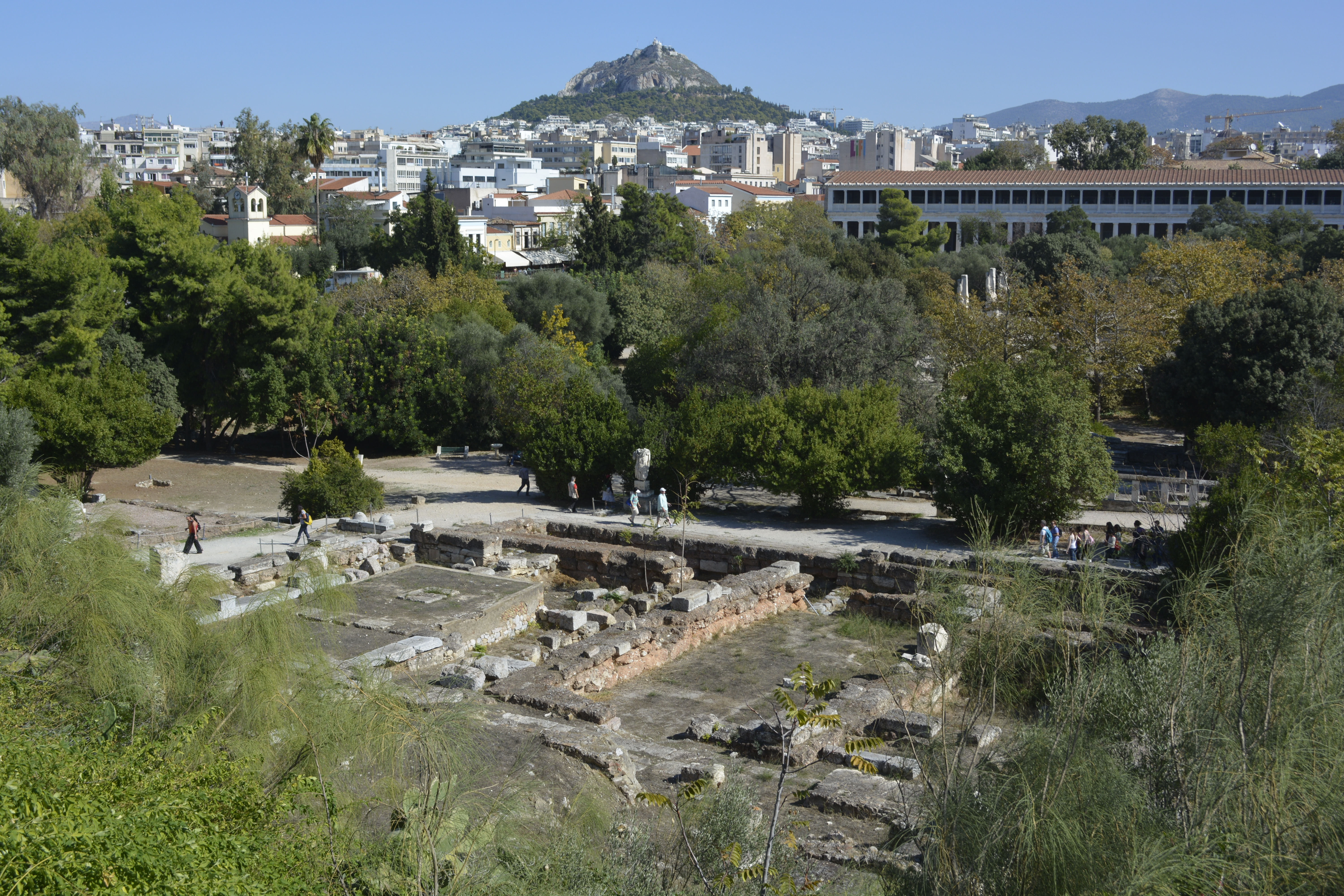 I made Thursday an easy day, as my knee was giving me pain. I think all the climbing in Turkey and now Greece began to take its toll! I started out at Montastiraki Square and headed toward the old Greek Agora. This is a very deceiving area when viewed from the Acropolis! There is actually a lot to see here. The most outstanding is the Stoia of Attalos, a columned hall of two levels that houses a museum with some very impressive statuary and pottery from as far back as the Bronze Age. The stoia was rebuilt in the 1950’s with grants from an American university. It also has many dioramas showing what the Acropolis looked like at various stages in its development.