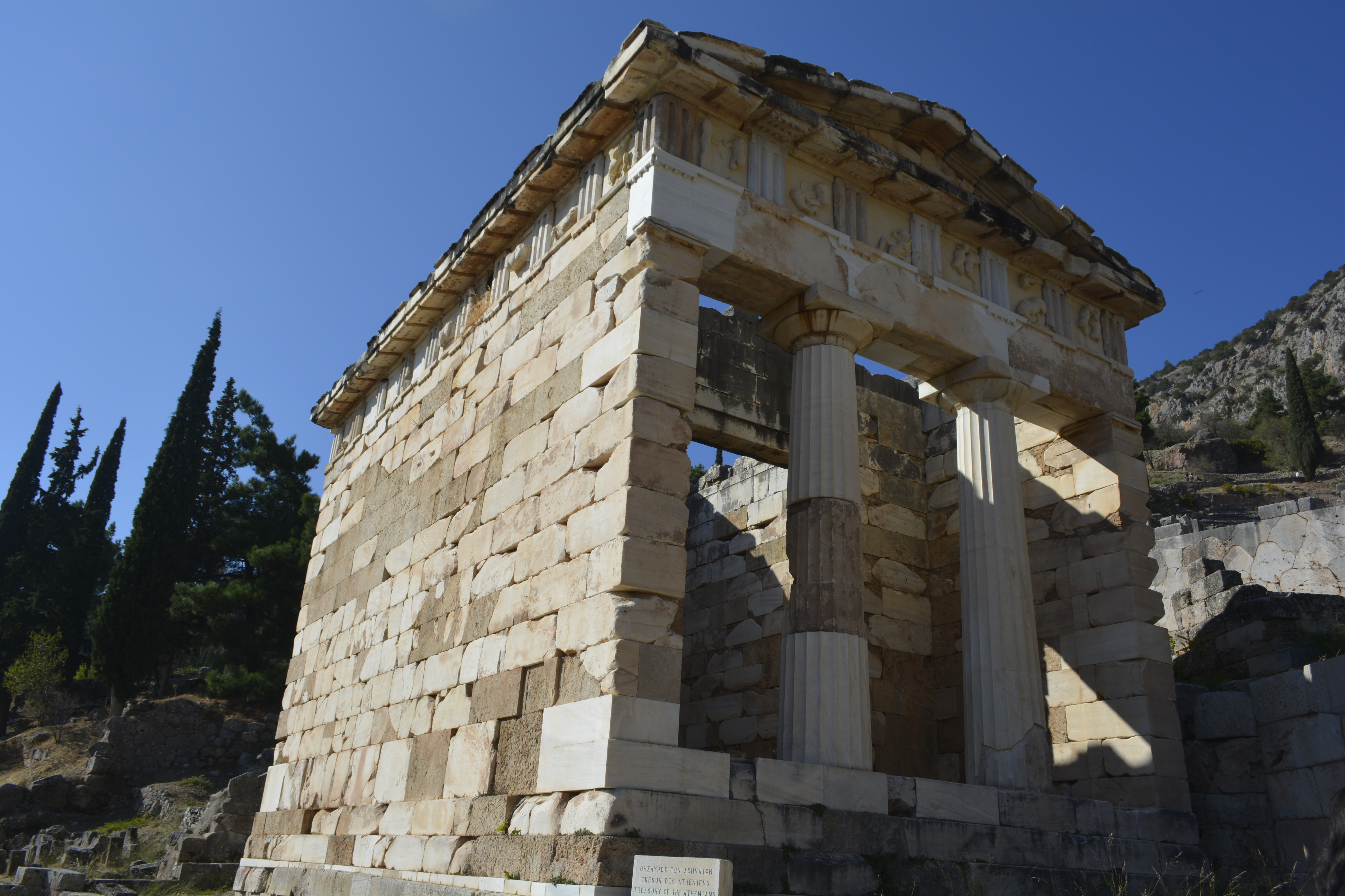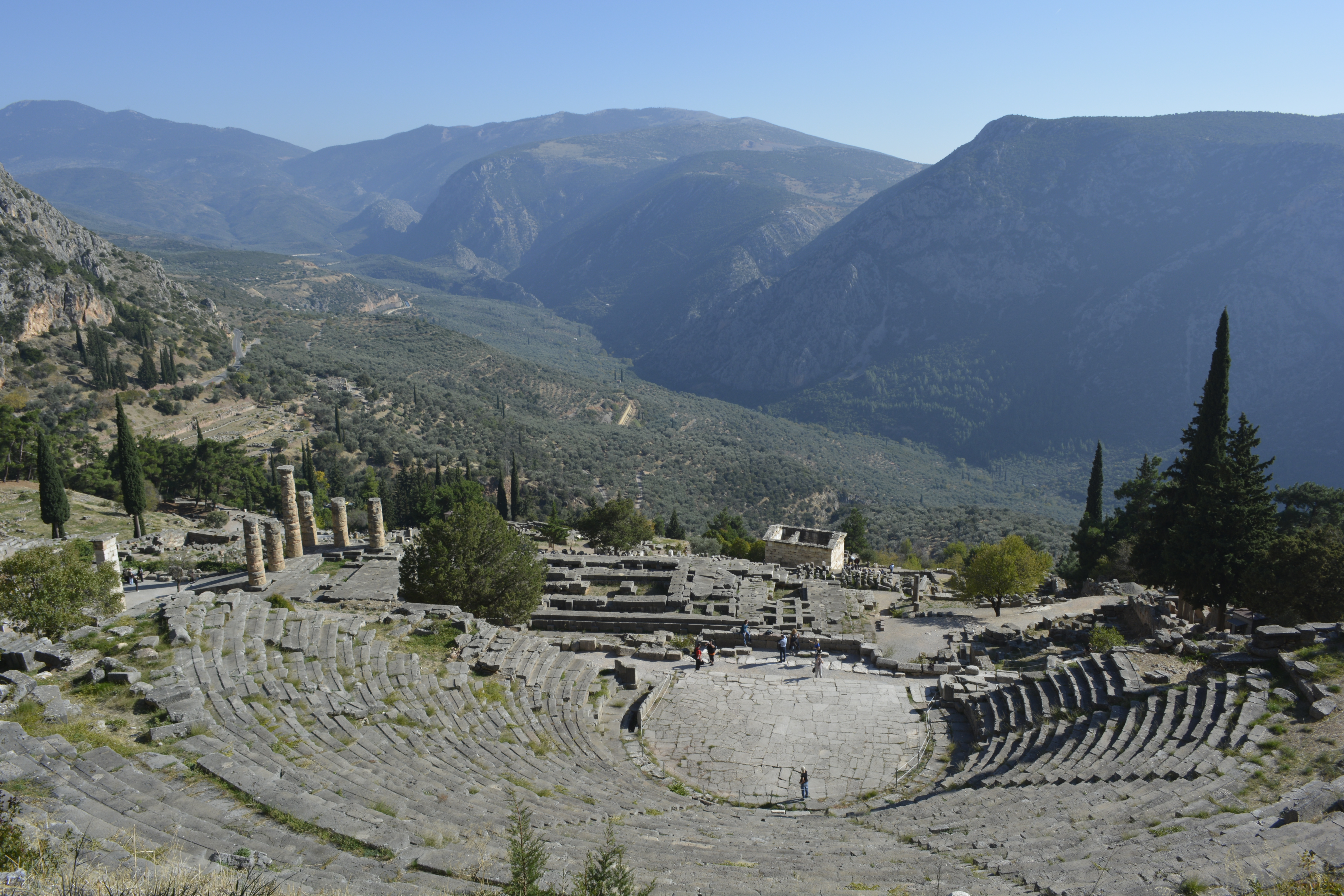 Delphi was considered the center of the world in ancient times. The story goes that Zeus let go two eagles and commanded them to fly in opposite directions. They met again at Delphi. There are still dome-shaped structures there that indicated that this was the navel of the world! The oracle of Delphi was chosen from among the elderly women from nearby towns who were thought to be wise. She would communicate with Apollo to seek his advise. Not much happened in ancient Greece from war, trade agreements to important journeys without first consulting the Oracle of Delphi. You would think that this is tremendous power to put in the hands of an illiterate woman from the countryside, but in actuality the oracle would speak, but the import and interpretation of what she was saying were in the hands of the high priests. The Greek city states brought great wealth to the temple at Delphi. So much so that each state would have a treasury where fellow citizen visitors would leave their offerings. Magnificent temples were built to honor the gods, especially Apollo, by those currying their favor, or those whose entreaties were realized. Many of the temples, however, were brought to dust by earthquakes and later, neglect. In its time it became a large and important site. There were even public games, Phythian Games, that were second only to the Olympics themselves in importance.