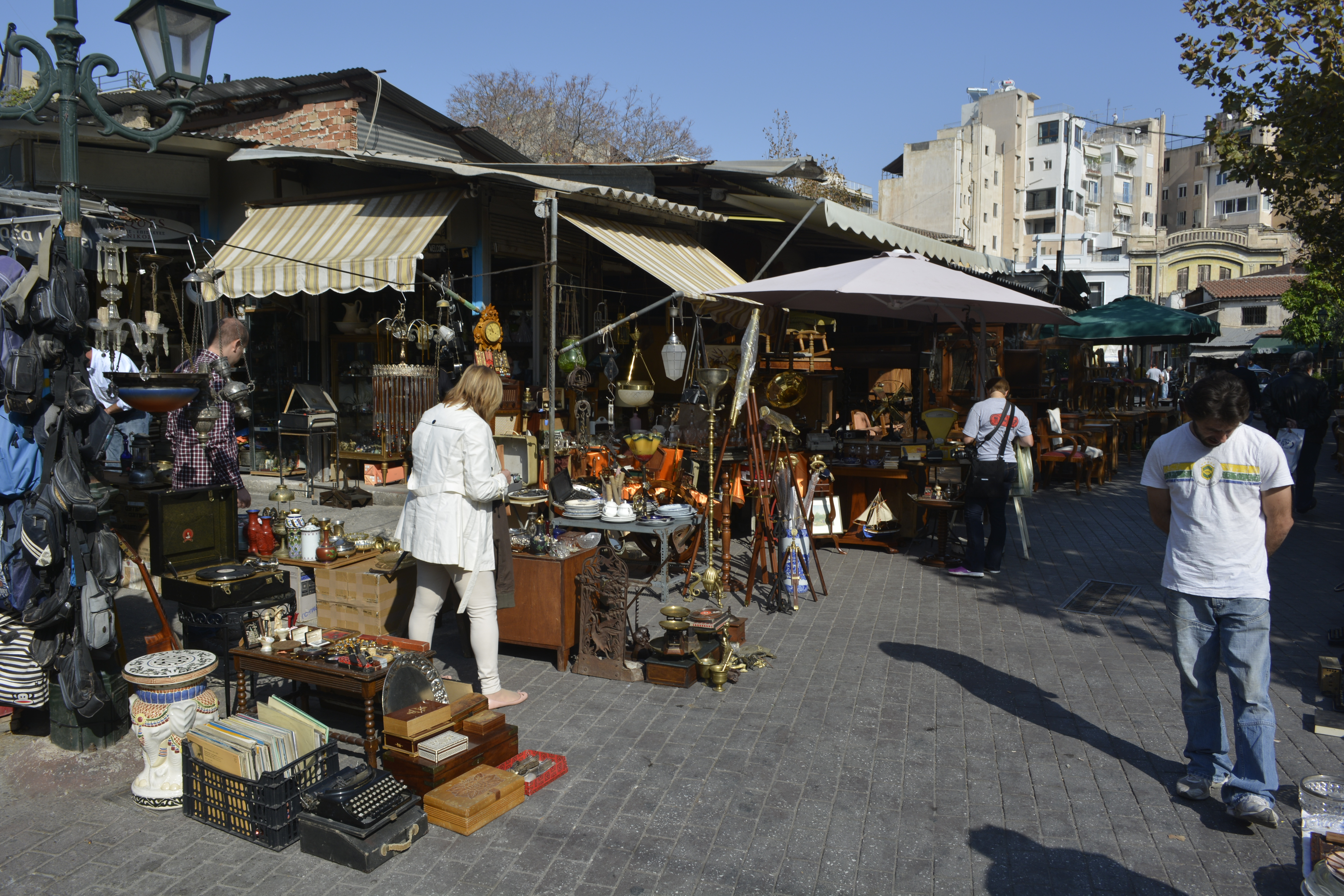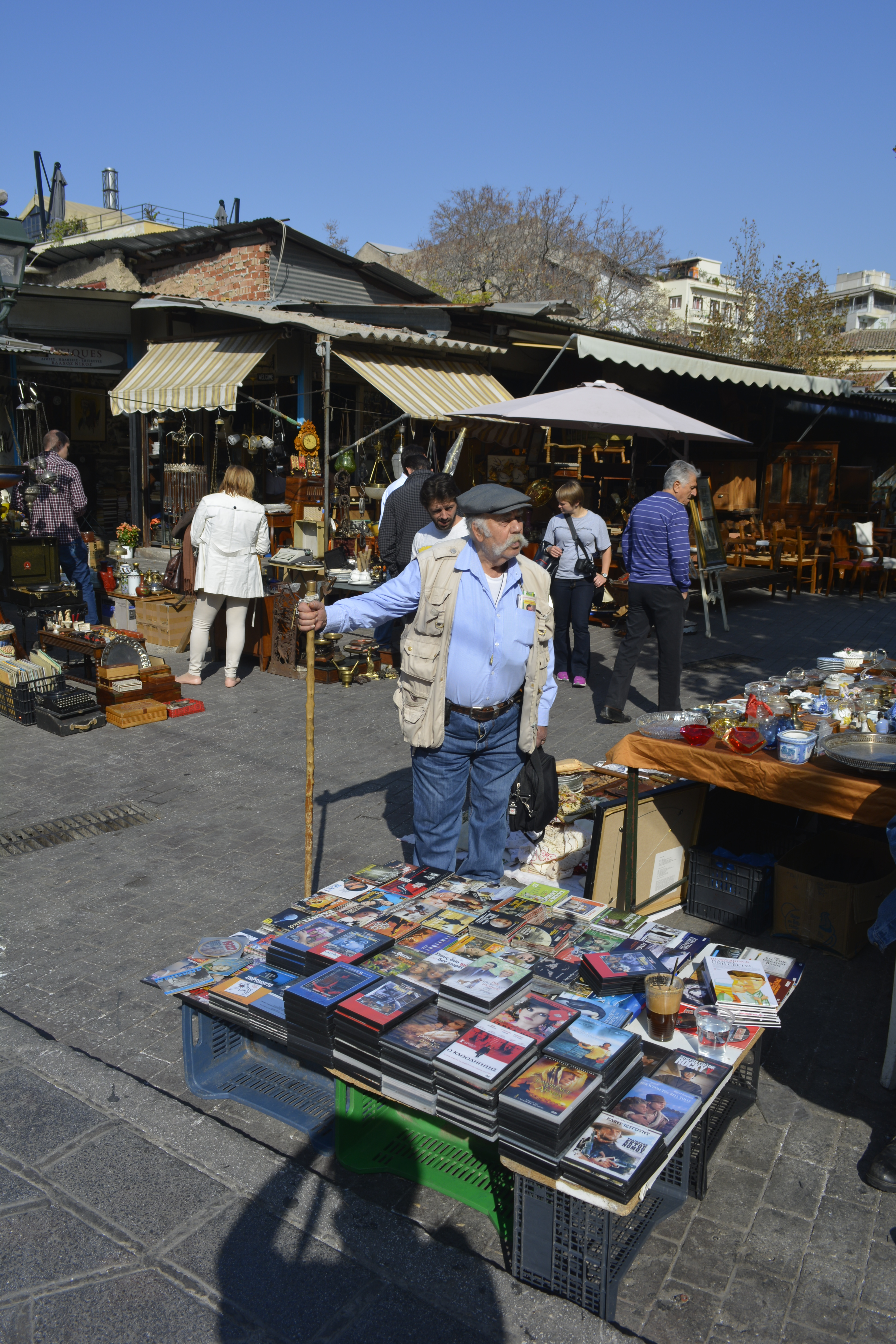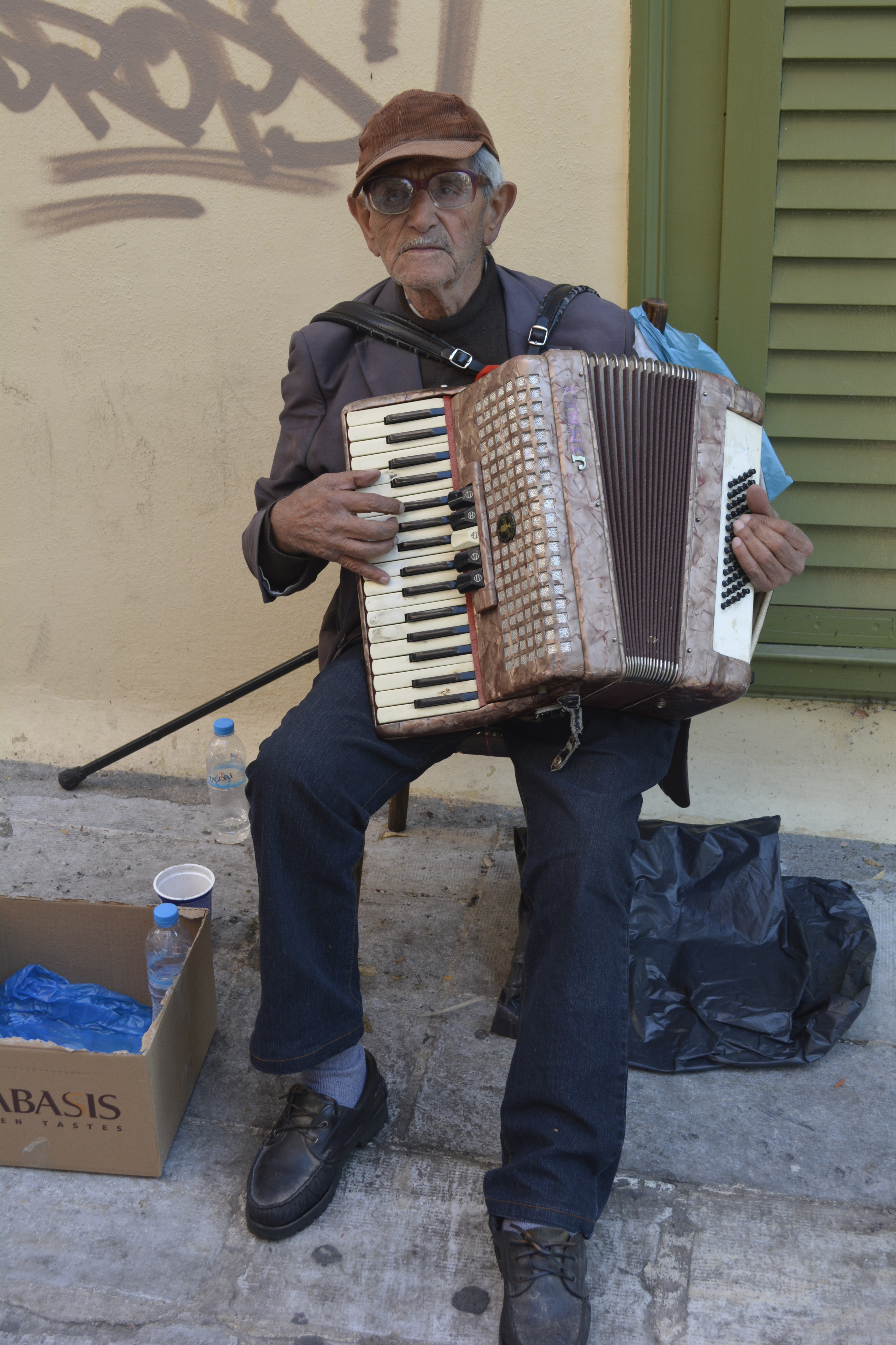 I eventually ended up in the area to the west of the Acropolis, a very livable area of small, quiet streets. I wandered through these lanes filled with second-hand shops. You would have to know your stuff not to get ripped off in this emporium! I watched as people haggled their way in Greek and English trying to negotiate the best price for antiques, or objects made to look that way! There were musicians and odd characters wandering the lanes which added to the energy of the place. I stopped in a shop that sold handmade crafts. The shopowner was a very animated and interesting woman. She was selling “kam-ba-loy” beads. I saw these beads strung together in Istanbul, Thessaloniki and Athens. I thought they were prayer beads as I would see men sitting or walking using them. The woman explained that they are actually worry beads. Men use them to distract themselves when they a re nervous or just have nothing to do!