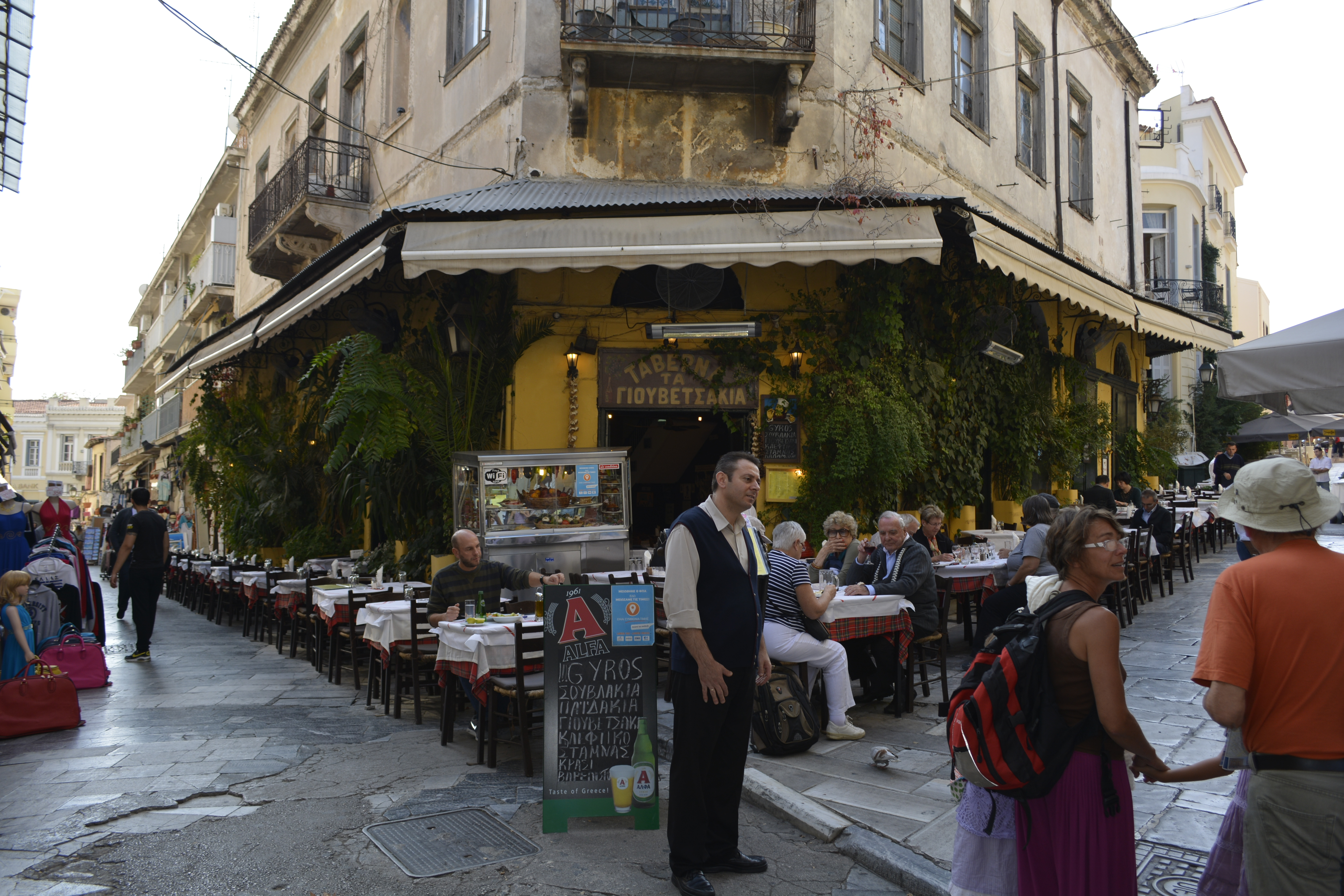 After a quick, very late lunch we headed back to Athens. When I saw the Omonia area, I knew where I was and got off the bus making my way back to the hotel—- but not without wandering first through the side-streets, of course! Travel is always much more interesting the slower you go and the further off the main road you manage to permit yourself to venture– not unlike life in general!