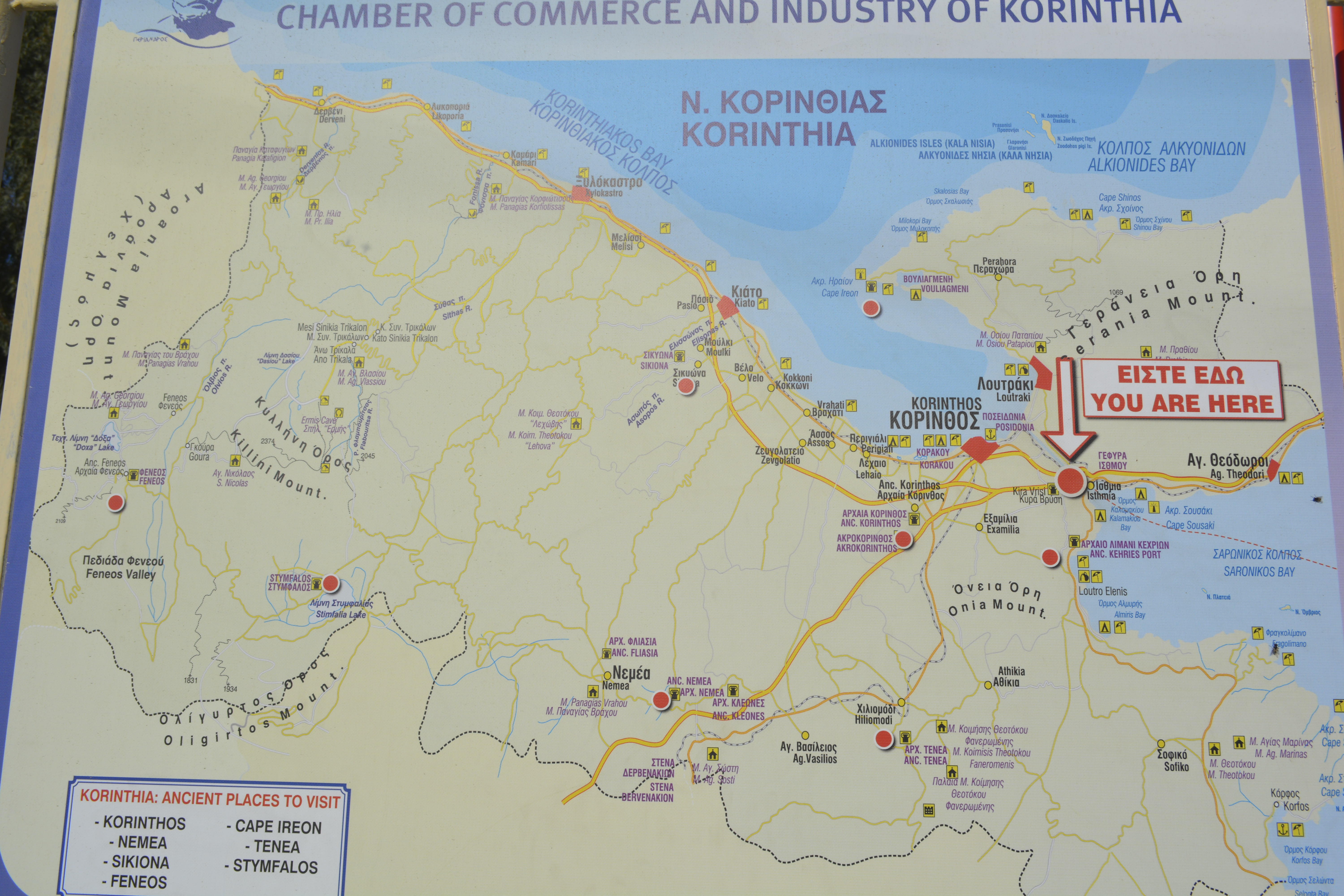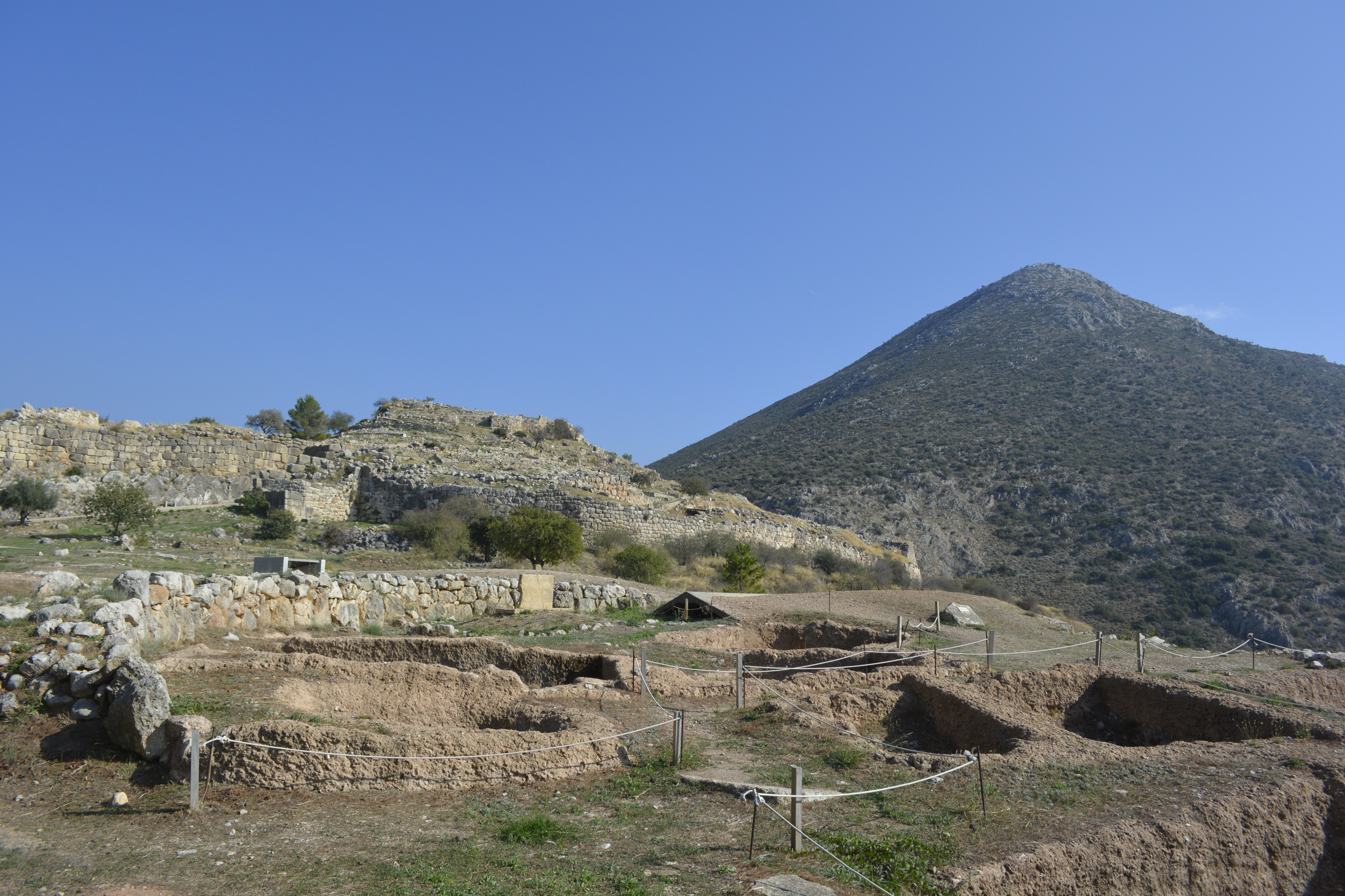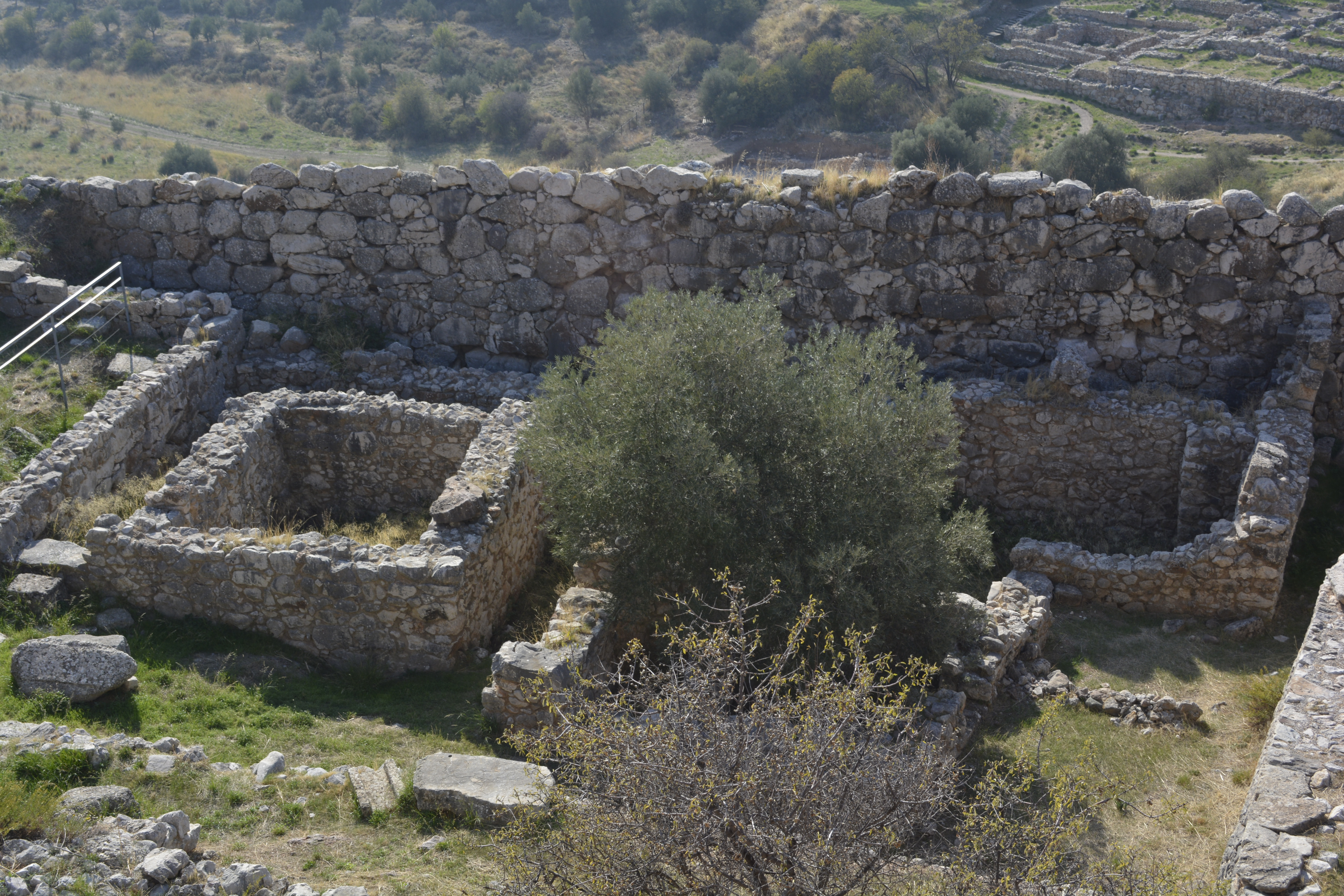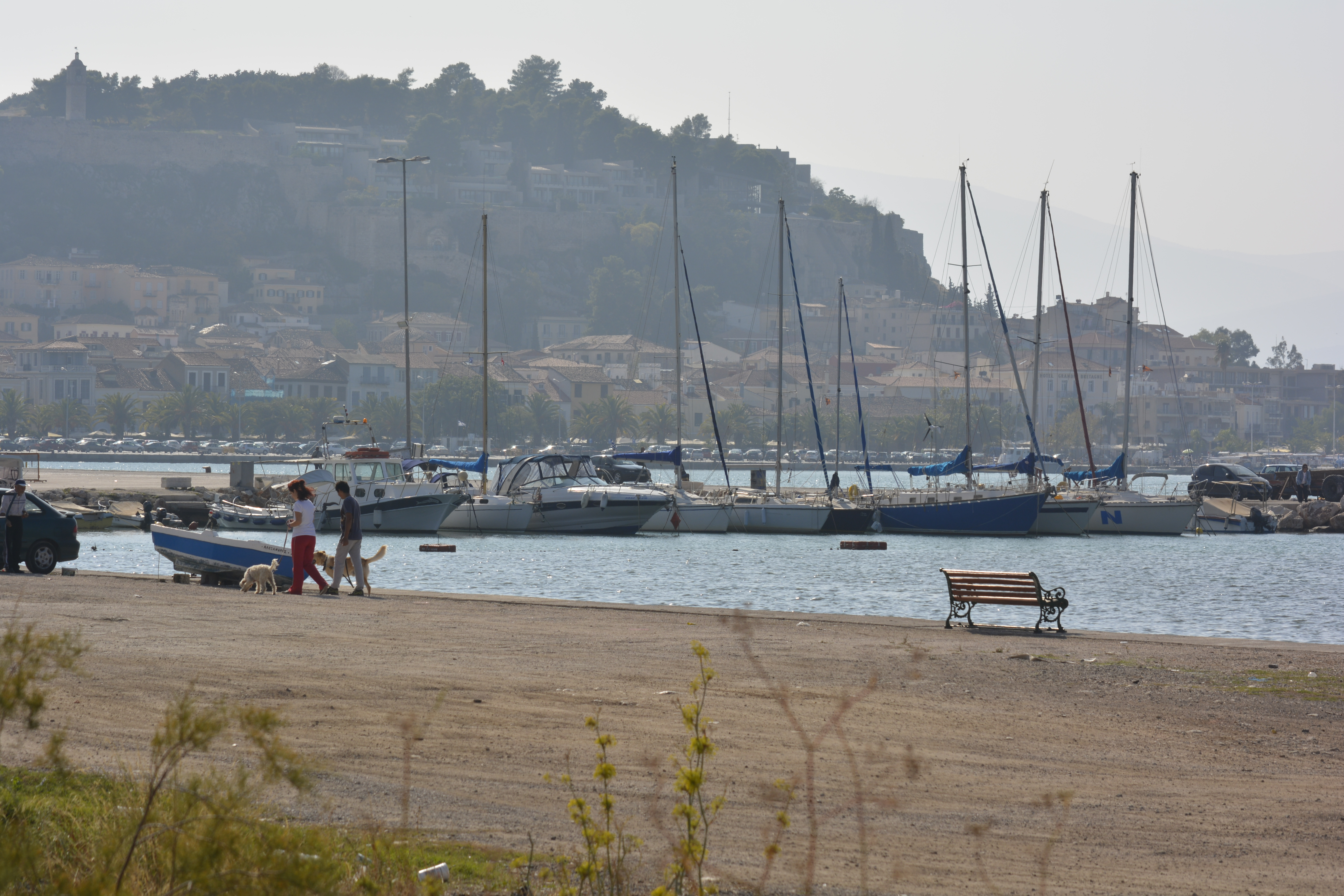 On our way to Mycenae, we took a side trip to Nafplio, the first modern capital of Greece after the country achieved independence from the Turks in the 19th Century. We quickly drove through the small city to the seacoast. We stopped at a refuse cluttered area near the railroad tracks. The day was hazy, but we were encouraged to get off the bus to see the acropolis of the town high above and the remnants of two fortresses, one built by the Venetians. I wasn’t the only one bewildered as to why we stopped here for 20 minutes. You really couldn’t take any pictures as it was extremely hazy and we were quite a distance from any of these sites! This time lost became important when we final got to Mycenae shortly thereafter and discovered that, as it was now November, the site closes at 3PM. This gave us a little less than an hour to see the whole site!