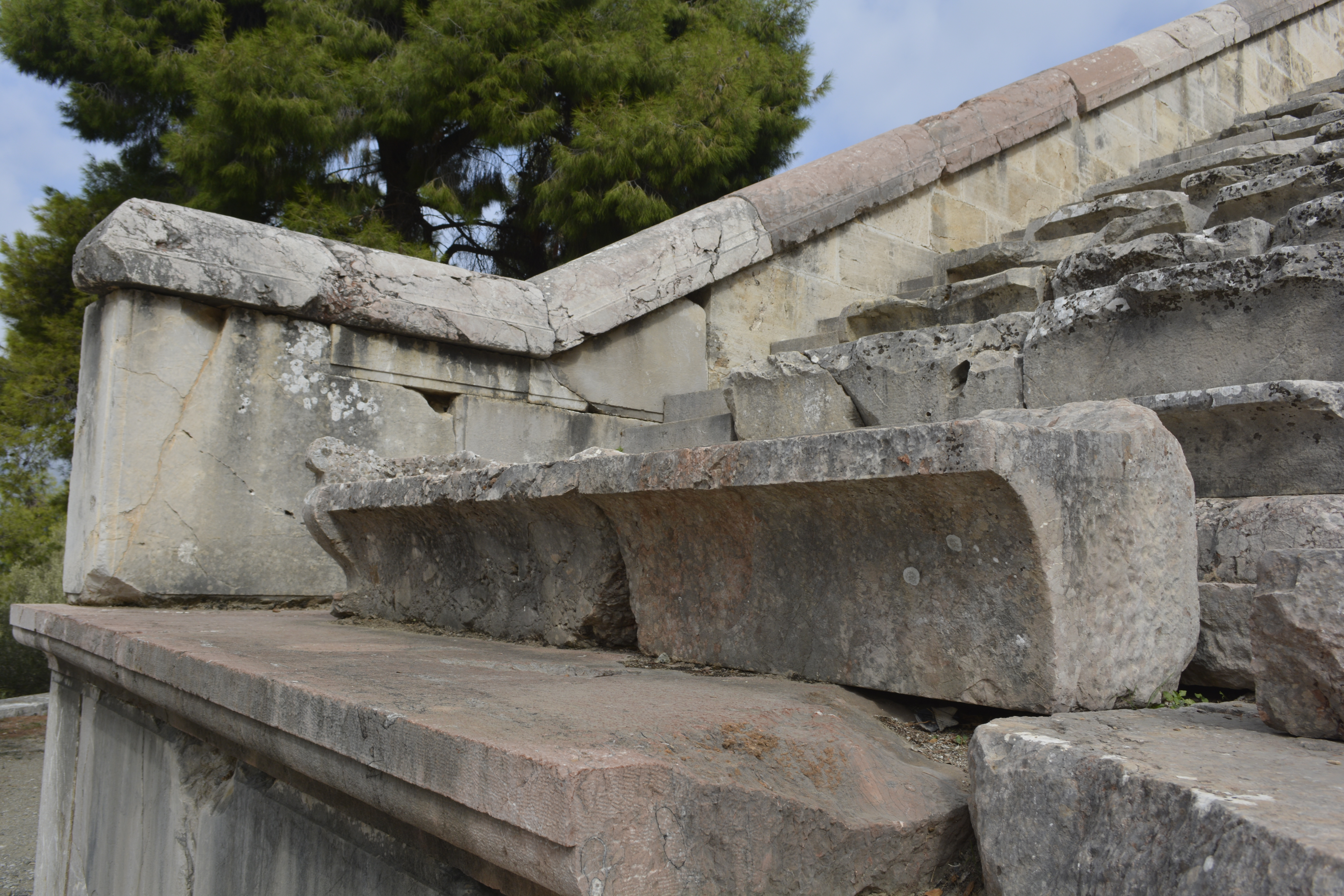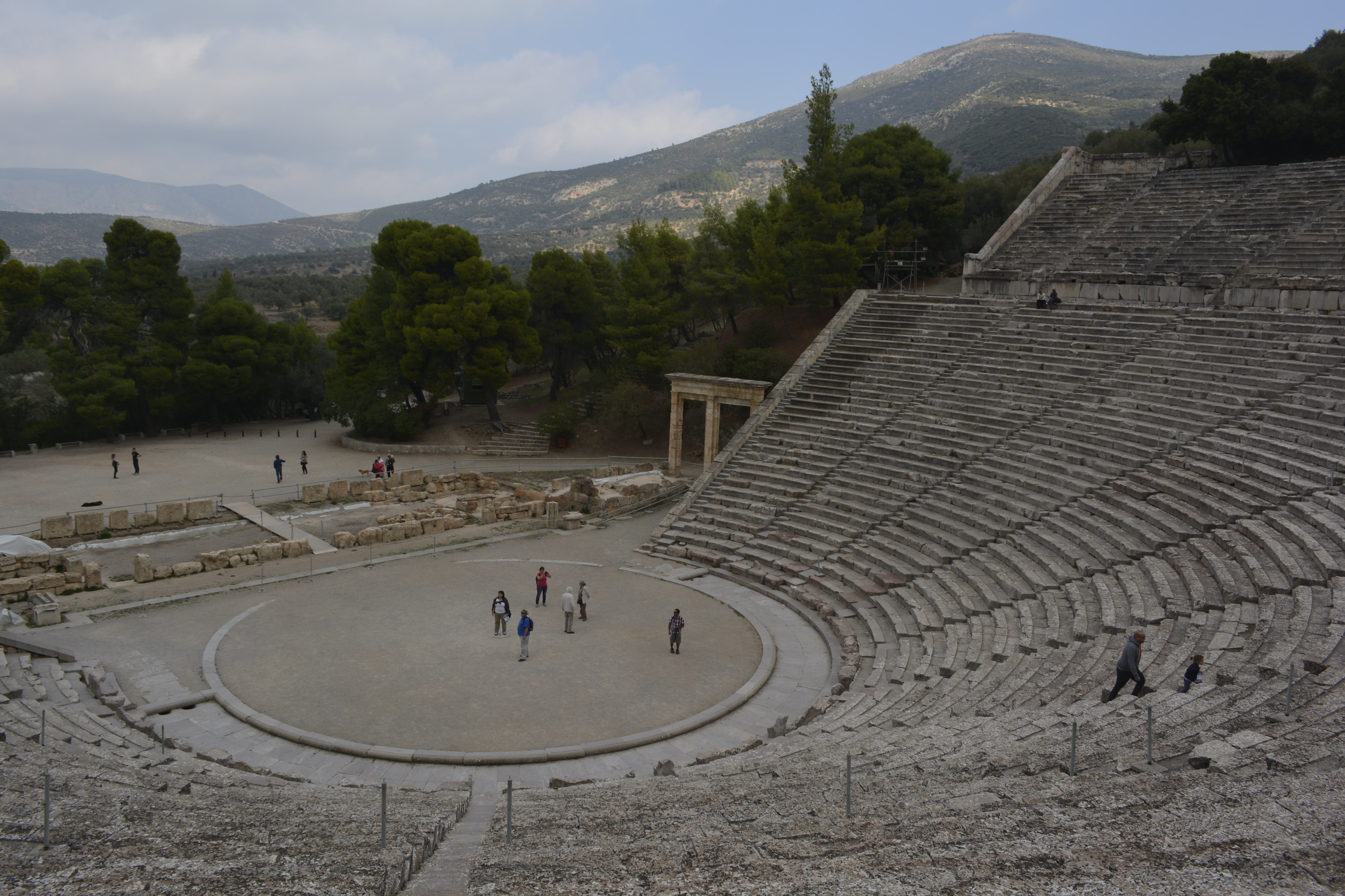 Then we were off to the magnificent Epidavros, an ancient healing center in the north-eastern part of the peninsula. Much has been destroyed here over the constant invasions from Romans, pirates, and northern “barbarian” tribes. However, it does have one of the most incredible theatres built in the 4th century BC and then enlarged by the Romans. This theatre holds about 15,000 people and the acoustics are amazing. The use of certain stones at the base and the extension enabled the patrons to hear even low-voiced delivery clearly even at the top! I went up to the top with several others and listened as people below conversed in natural tones— all very easily heard from our perch!