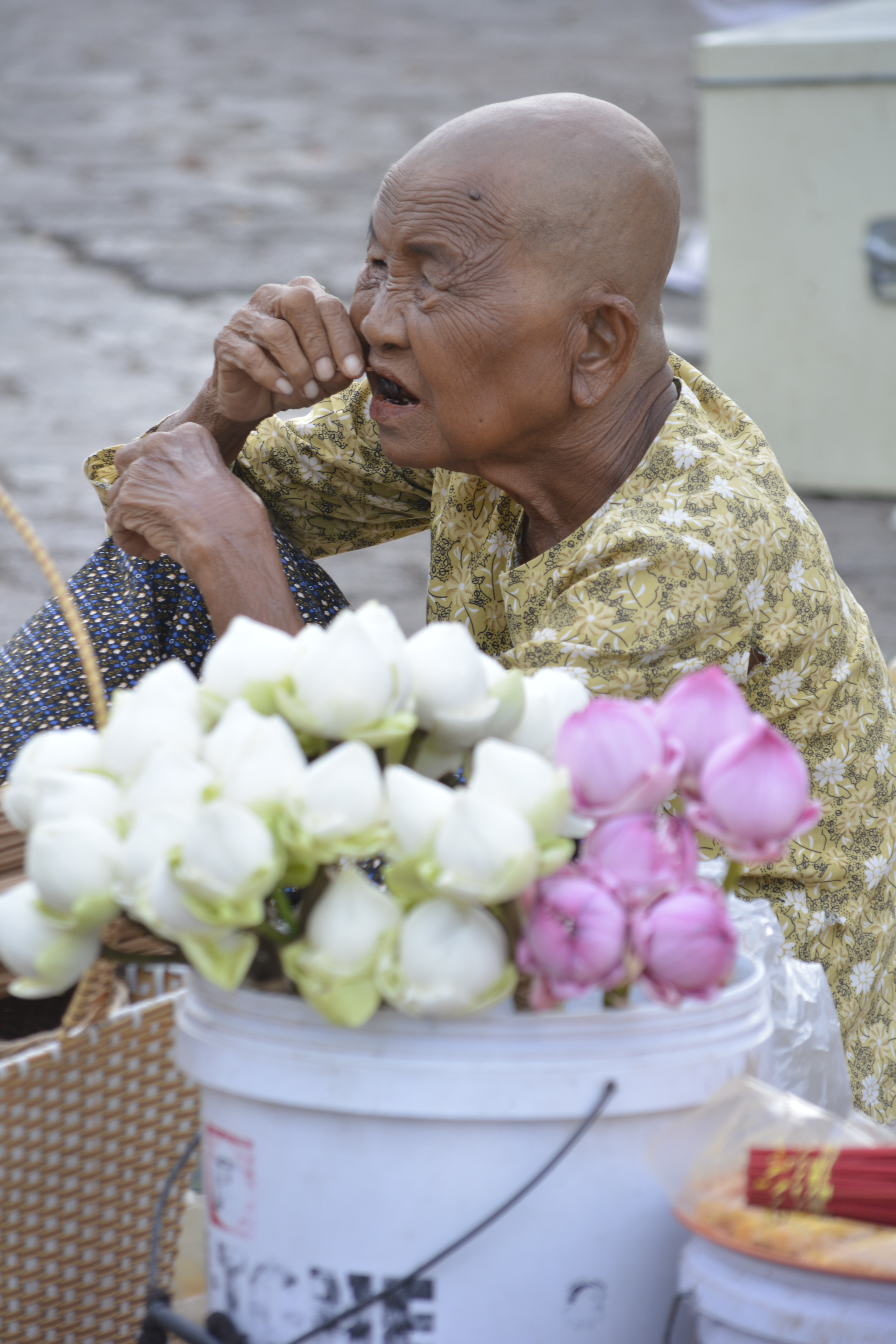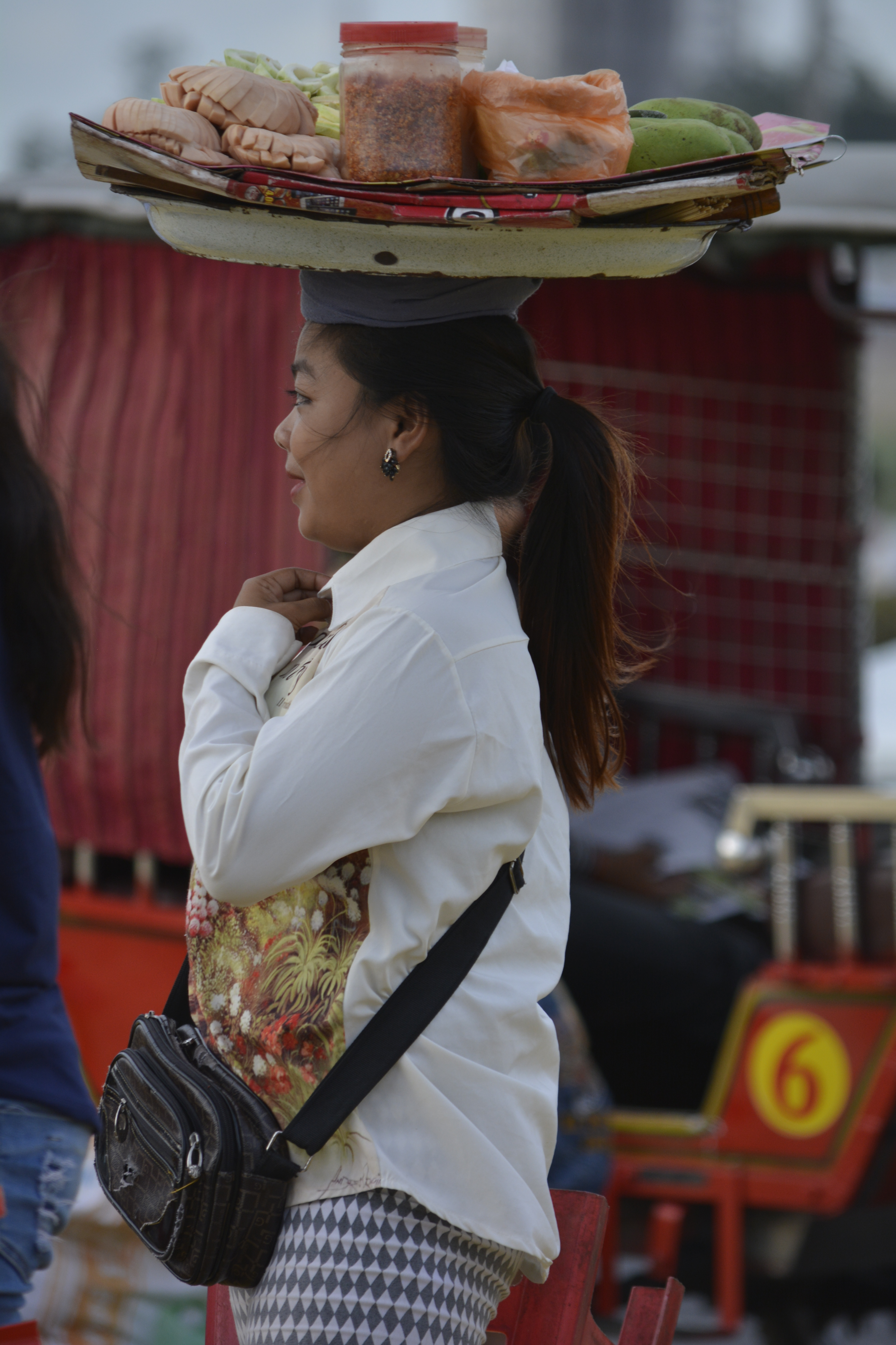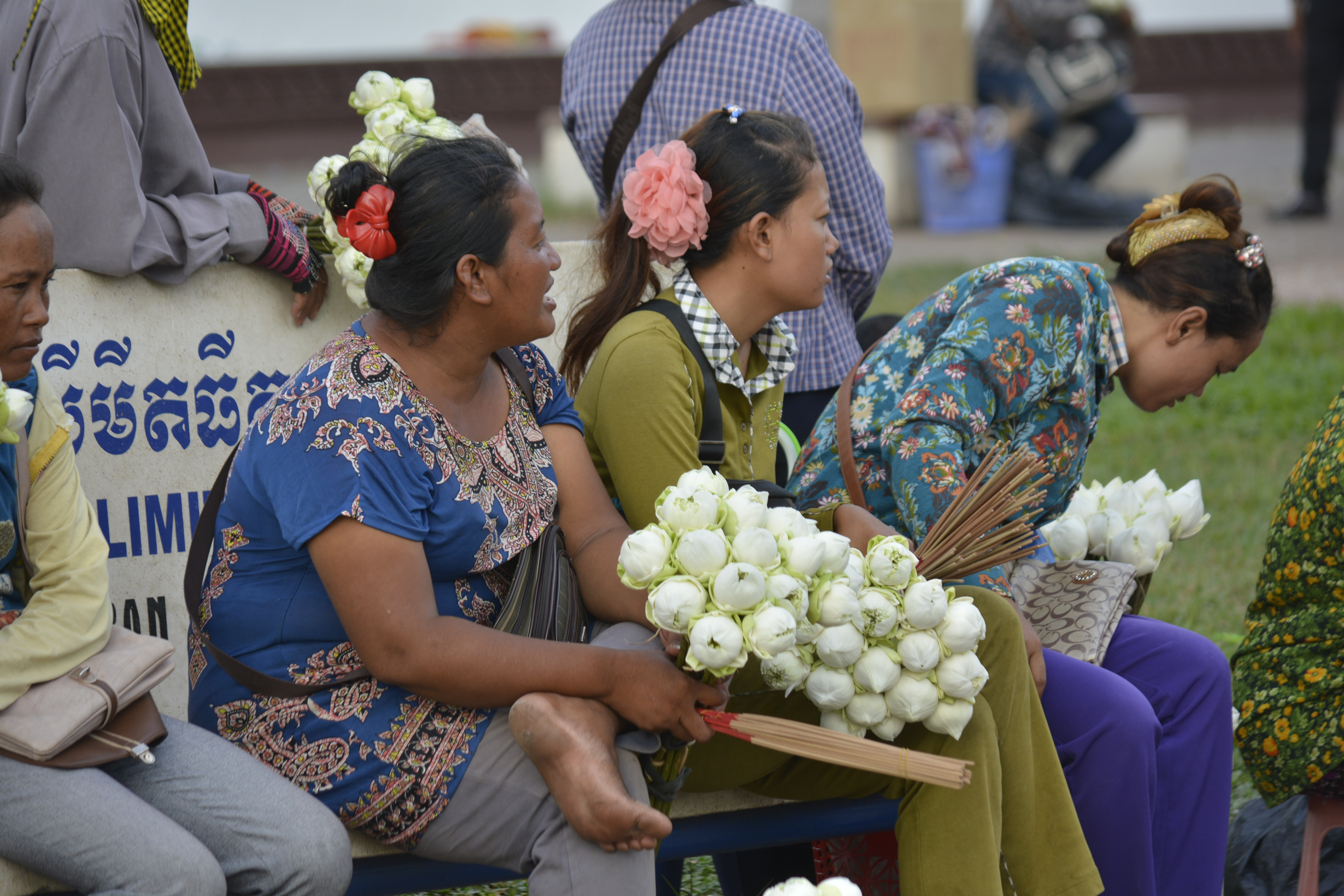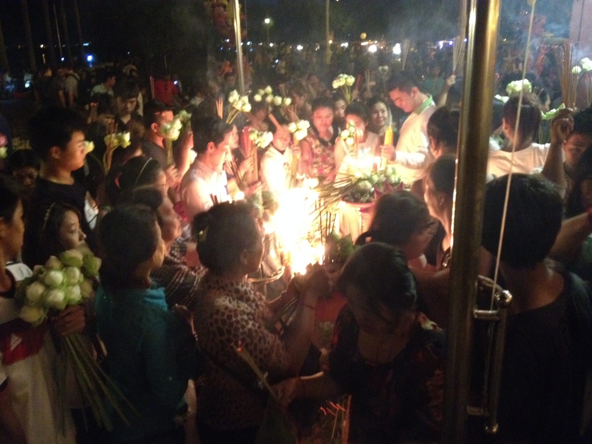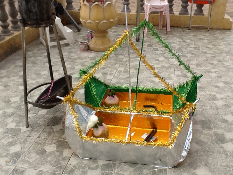 As evening approached, I again found myself drawn to the shrines along the river. So much going on in the name of religion, both devout and chicanerous. This will always happen when people believe that to have their prayers answered, much mystery and ritual must be involved. People selling the mandatory offerings of flowers, incense and coconuts make a fortune. So much is placed in the little shrines, that there are people there to throw these gifts unceremoniously out a back window to make room for more. And I’m sure the flowers that are still in good condition will make their way to the flower sellers again. Also small urchins seem to wander around as it appears that having an “innocent” light your candles and incense sticks will somehow curry more favor with the gods. They move with pots of fire. I’m sure if Dickens had made it to Cambodia, he would have made much of this place. And yet, it is a fascination you cannot miss.