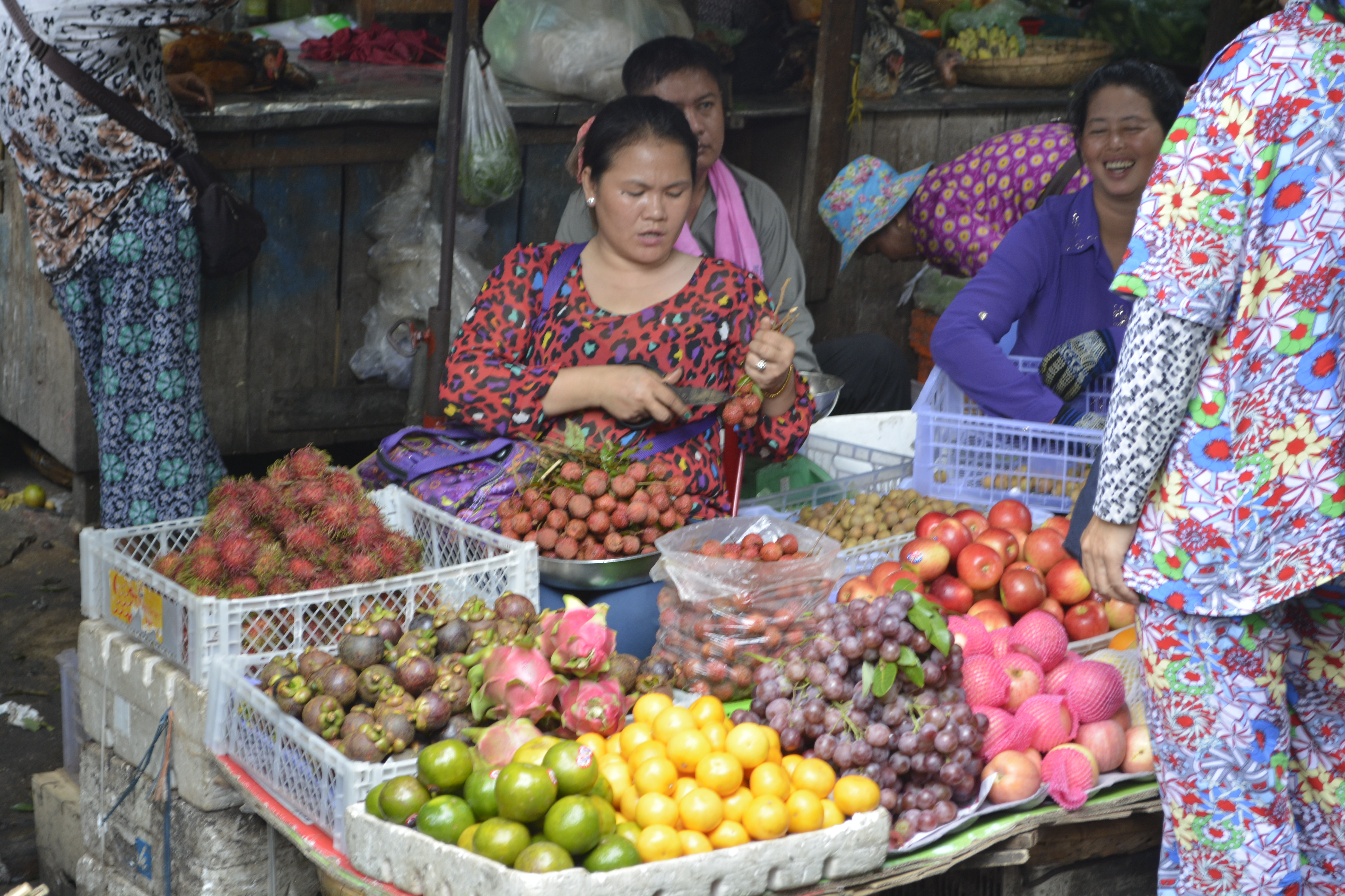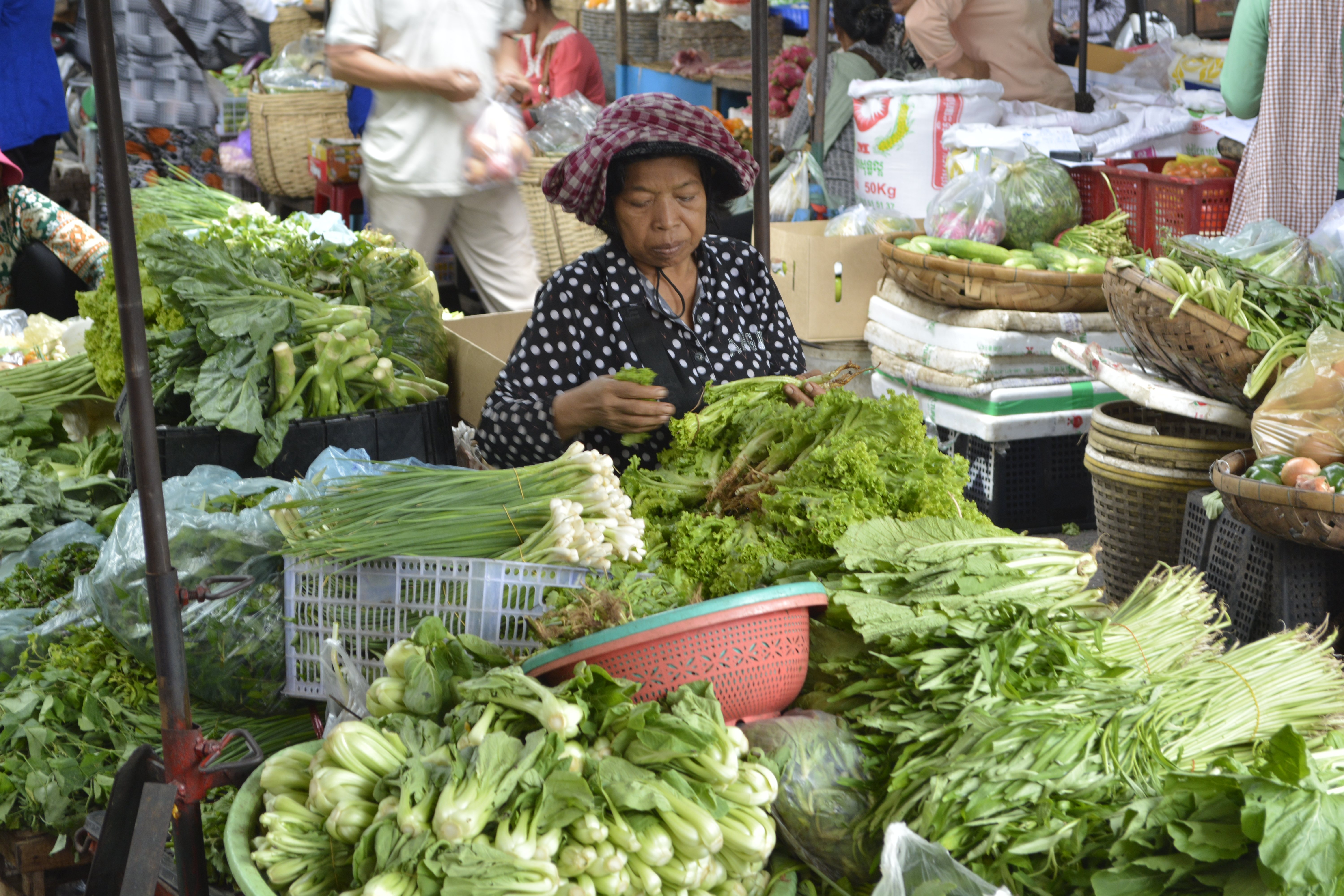 My first full day is a long one. After breakfast, meandered through the twisting morning market where you can get anything you need from food to currency exchange– at a better rate than the banks, of course! I find out that it is better to use the riel because if the price is $2.00, they take 4000 riels each dollar for convenience. Not much of a difference, but it is a better deal!