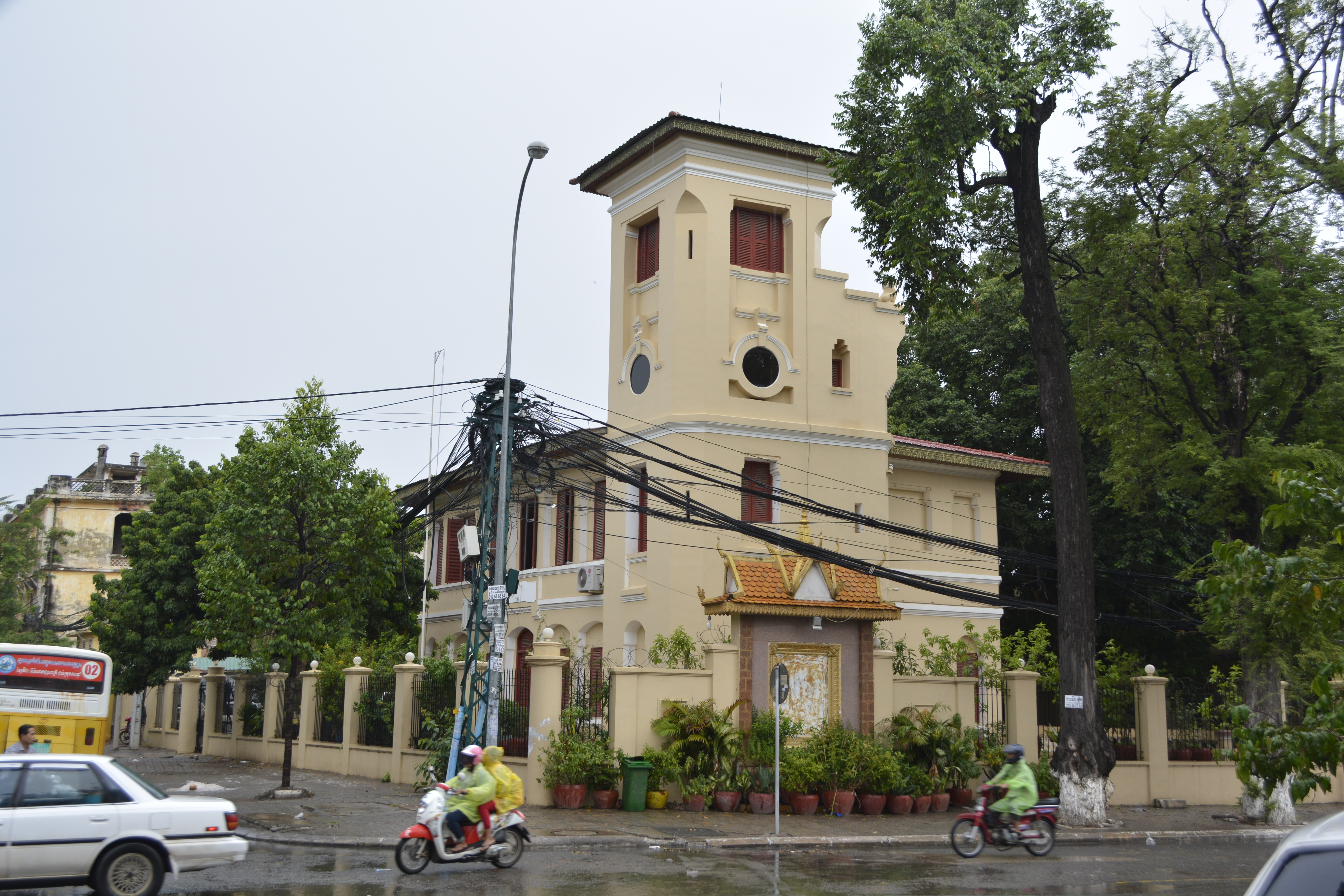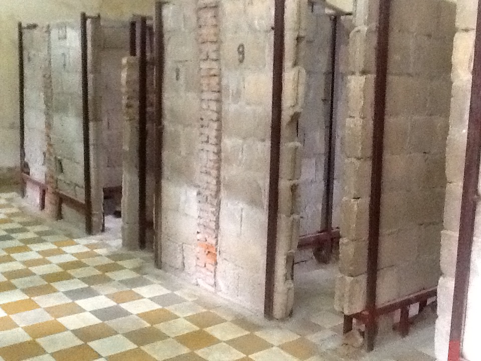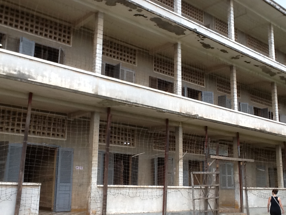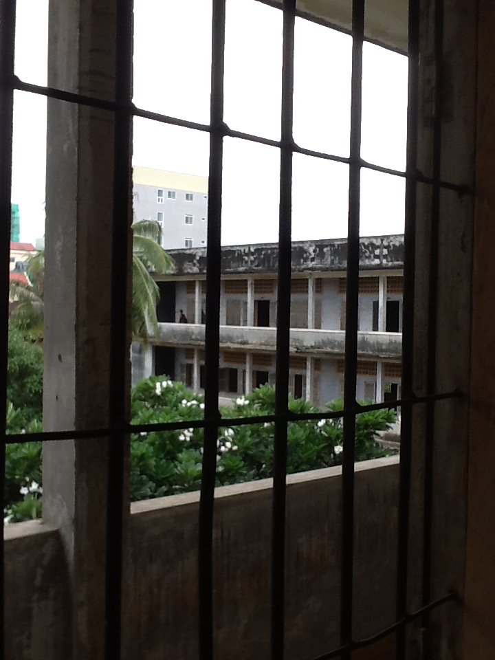I did not wait for the rain to stop before I left, hailed a tuk-tuk and headed for Toul Sleng, the infamous Khmer Rouge prison. I’ve written on this place in past trips, so I will not repeat it here. But it is still one of the most powerful places I have ever visited. The halls of photos of those killed continues to be haunting, mesmerizing and draining. There are few people here today, probably because of the rain. At one place I found a panel of the rusted original barbed wire that still covers one of the windows. I extended my arm through an opening and couldn’t help but reflect that so many who were imprisoned there must have tried the same thing. How far do you have to extend it to be truly free?